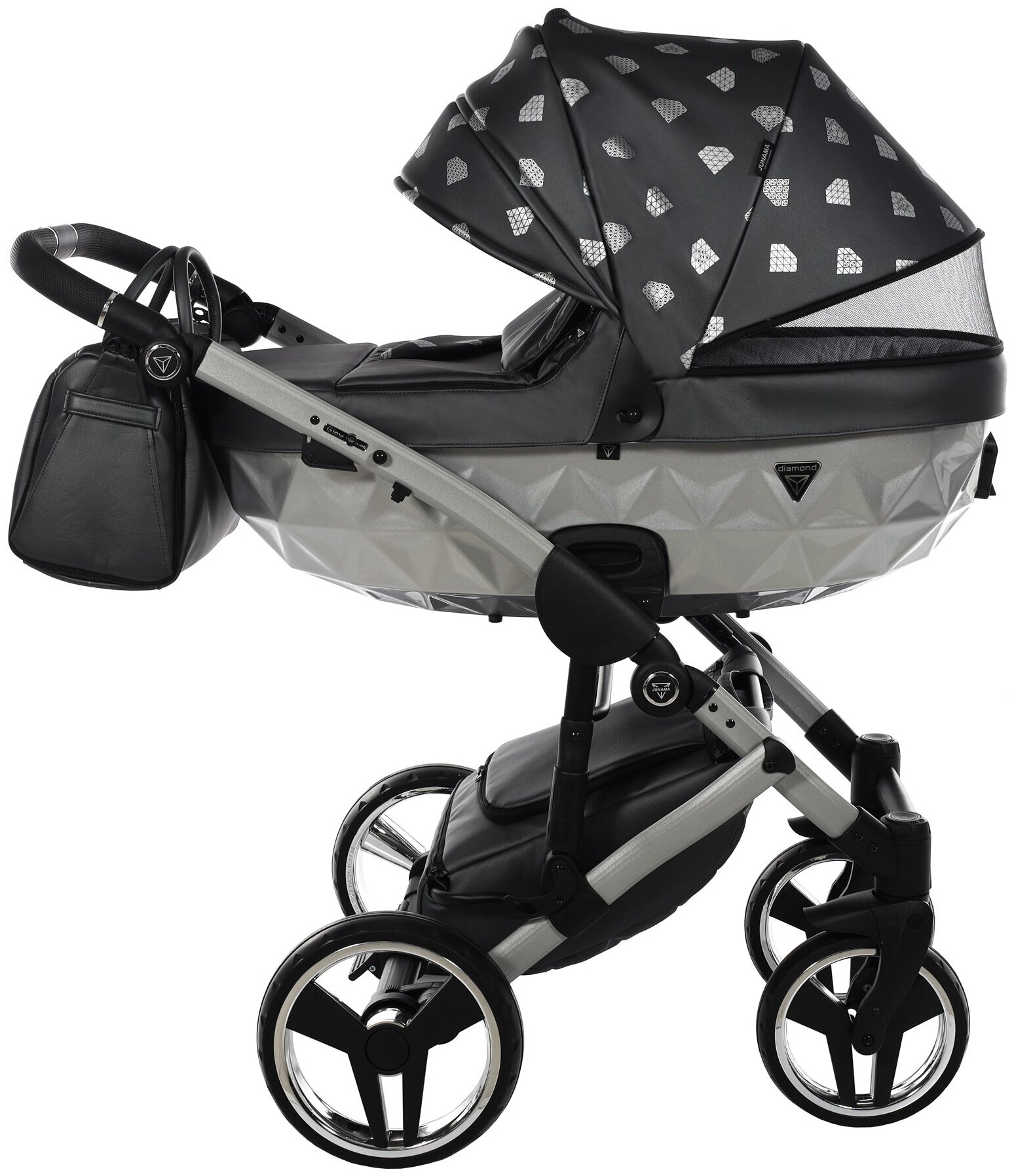 Купить Универсальная коляска 2 в 1 JUNAMA GLOW JGLv2-04 VERSION 2 (серая кожа/серебро)