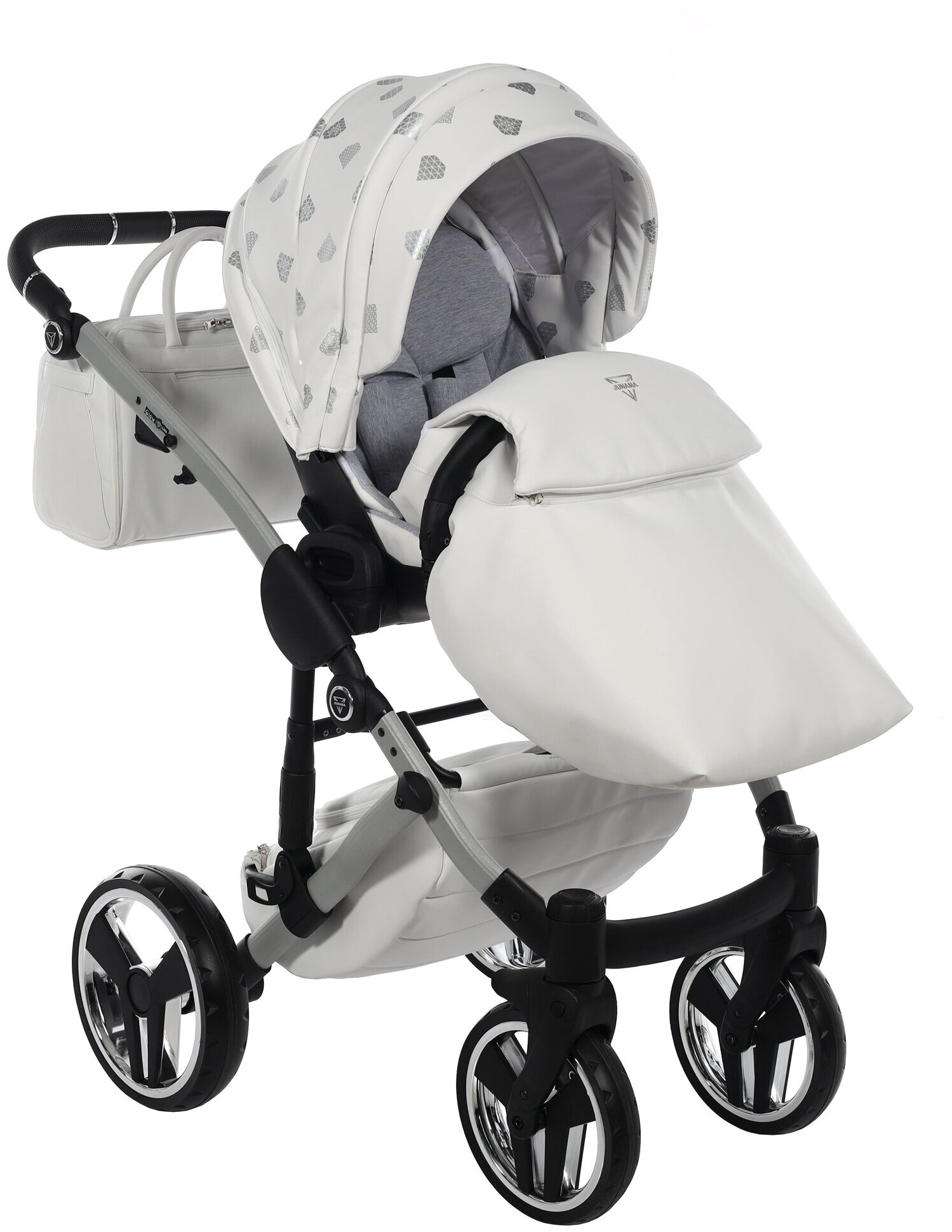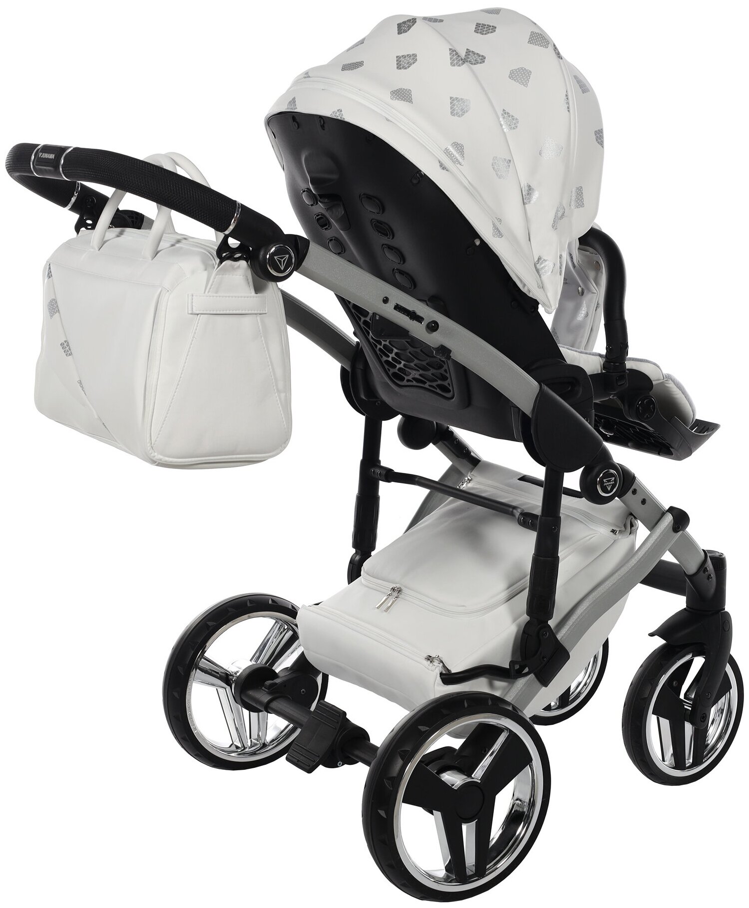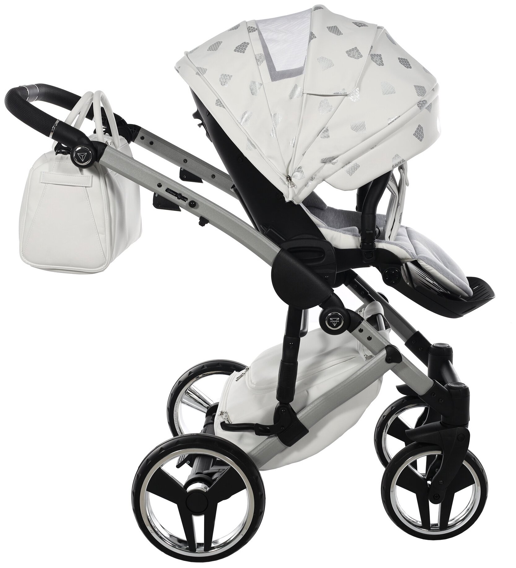 Купить Универсальная коляска 2 в 1 JUNAMA GLOW JGLv2-03 VERSION 2 (белая кожа/серебро)