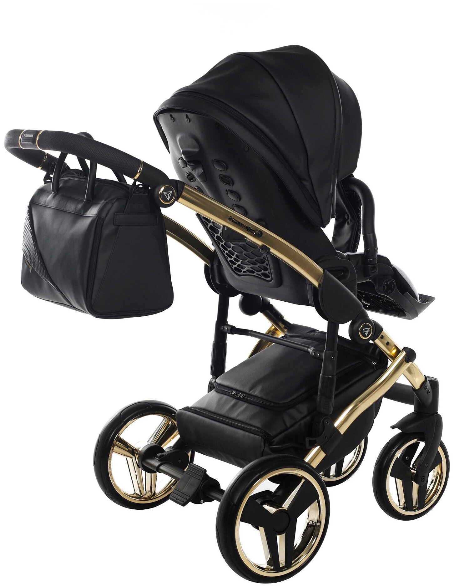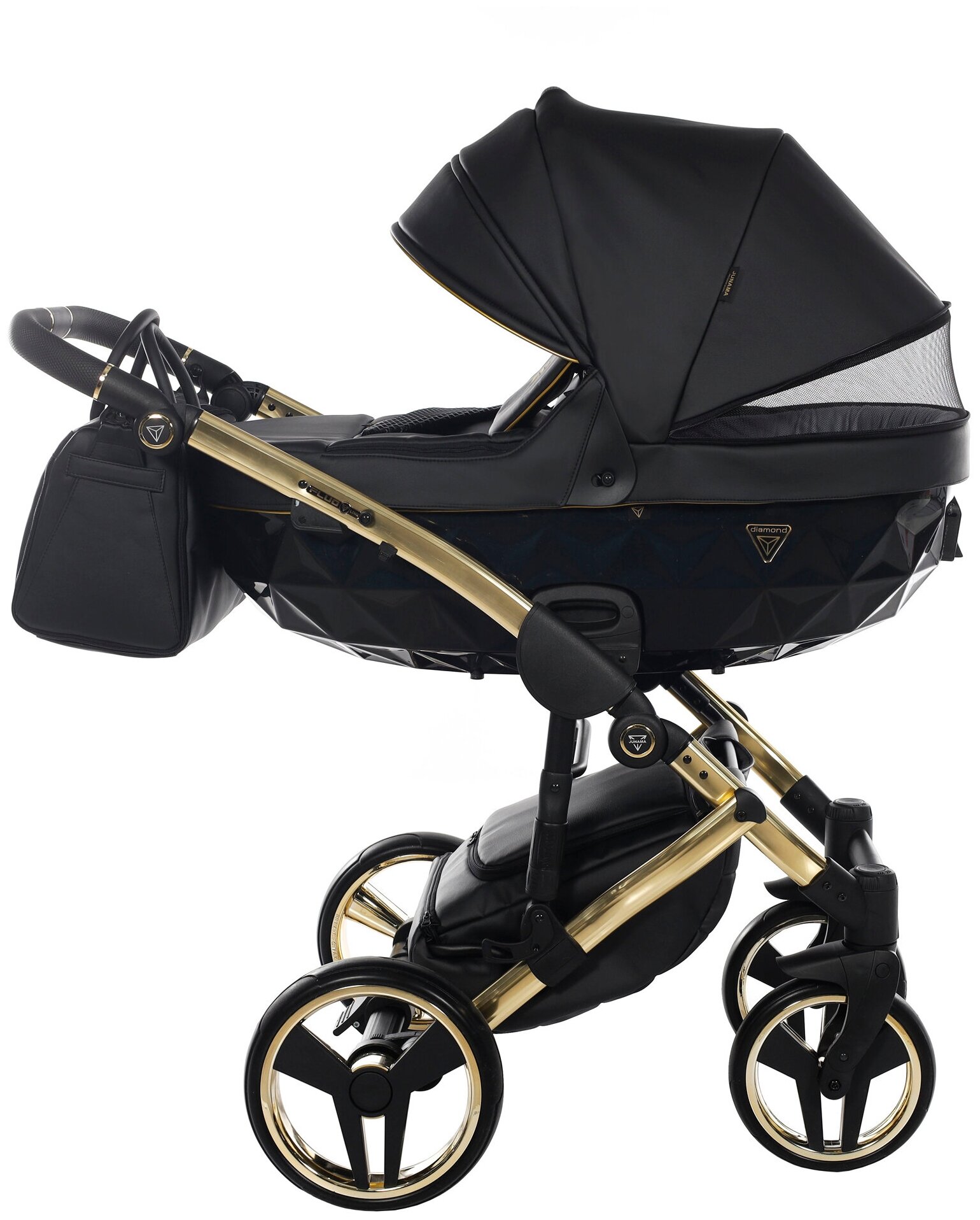 Купить Универсальная коляска 2 в 1 JUNAMA FLUO LINE JDFLv2-04 VERSION 2 (кожа черный/короб черный/рама золото)