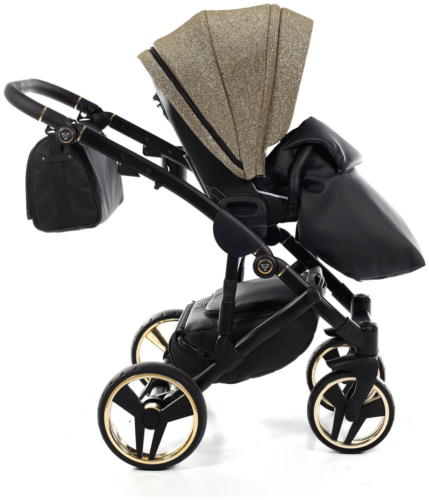 Купить Универсальная коляска 2 в 1 JUNAMA SUPER STARS JSS-02 (ткань золотистая/короб черный/рама черная)