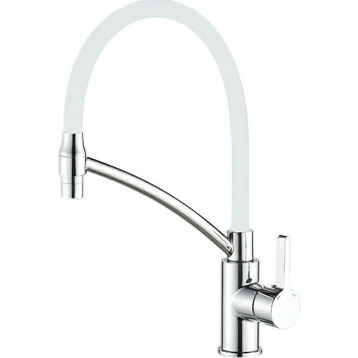 Смеситель для кухни с высоким поворотным гибким изливом (силикон) белый,хром