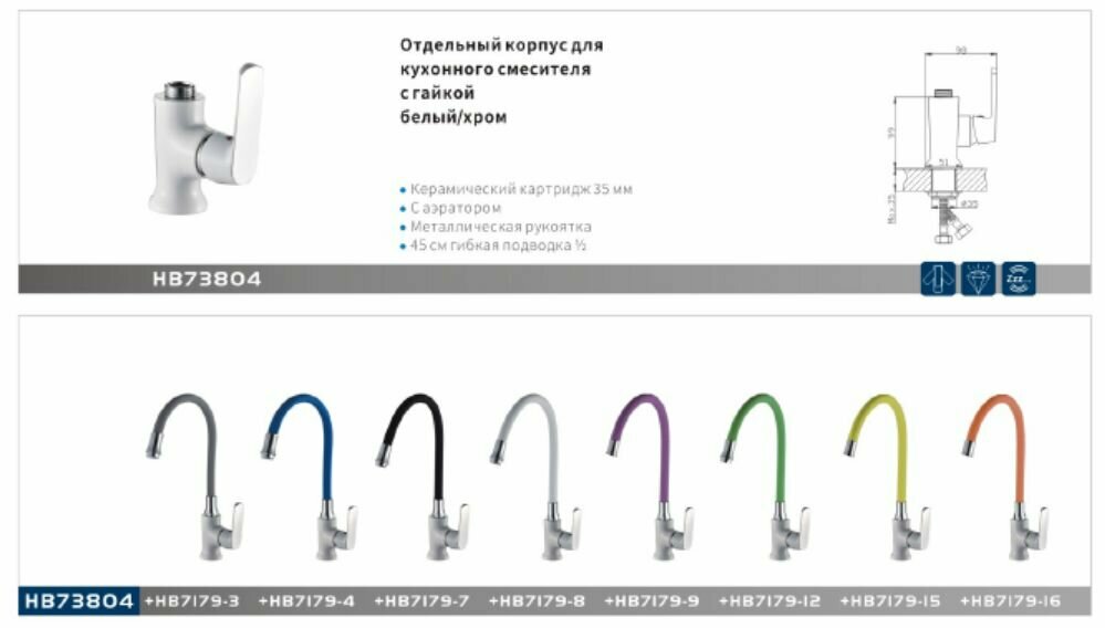 Смеситель для кухни Haiba HB73804 без излива, белый/хром. интересное: