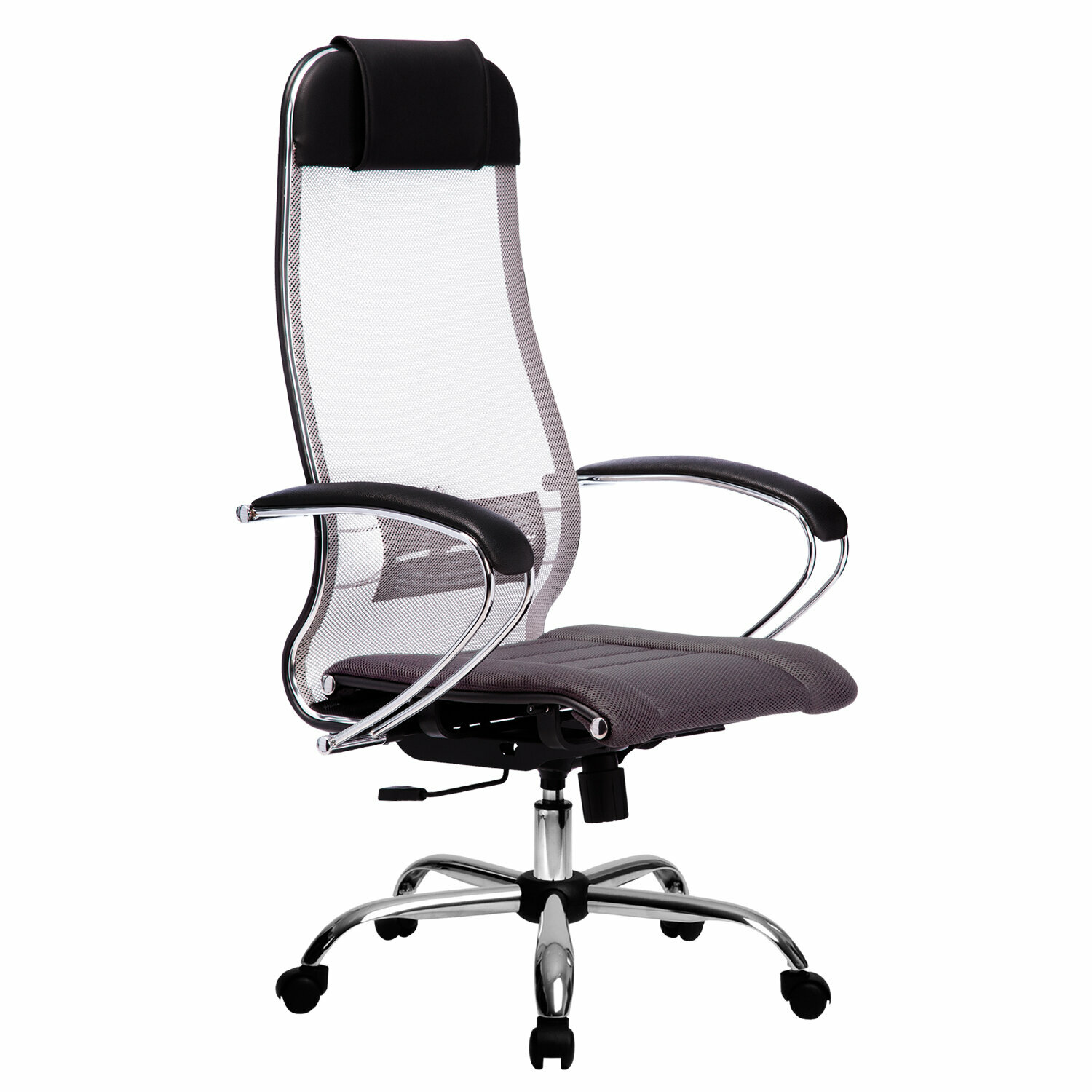 Кресло офисное Метта К-3 хром, ткань-сетка, сиденье и спинка регулируемые, темно-серое