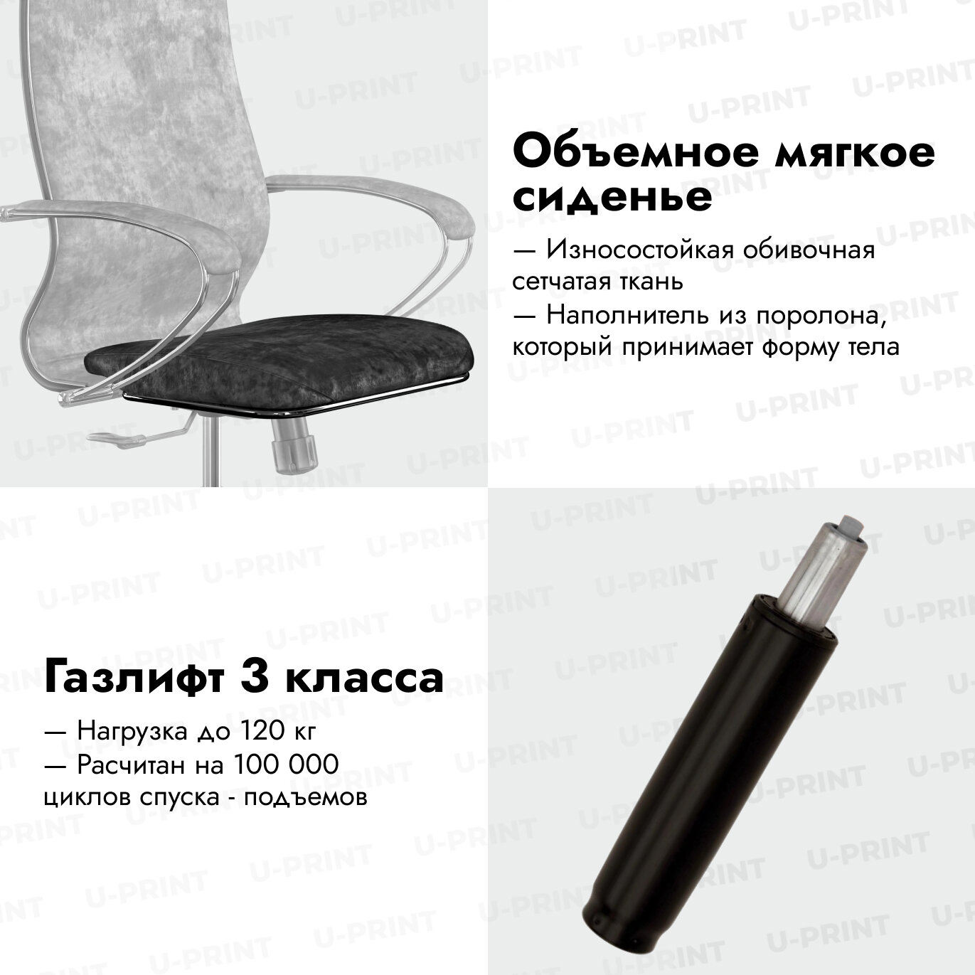 Офисное кресло Метта L 1m 42/K118, велюр, темно-серый, хром (L 1m 42 Bravo/подл.118/осн.003)