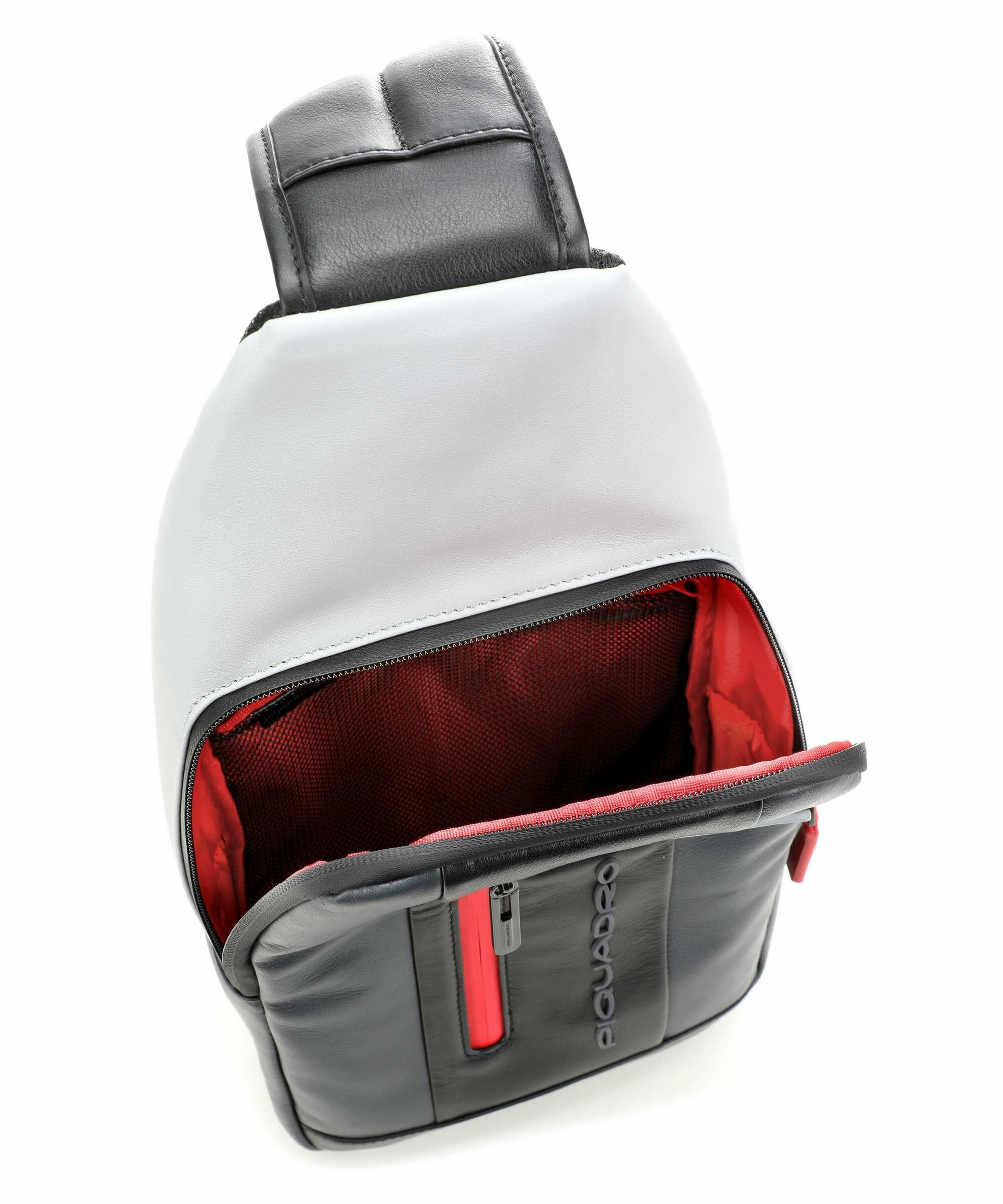 Рюкзак слинг PIQUADRO, натуральная кожа, черный, серый