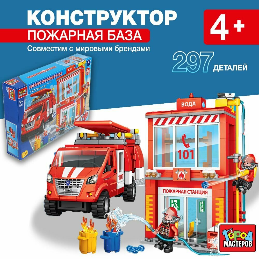 Купить Конструктор Город мастеров пожарная база с водой, с фигурками, 297дет.