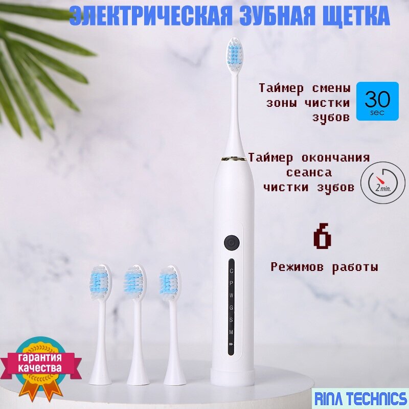 Электрическая ультразвуковая зубная щетка / 4 насадки / Зубная щетка // SONIC TOOTHBRUSH X7 белая