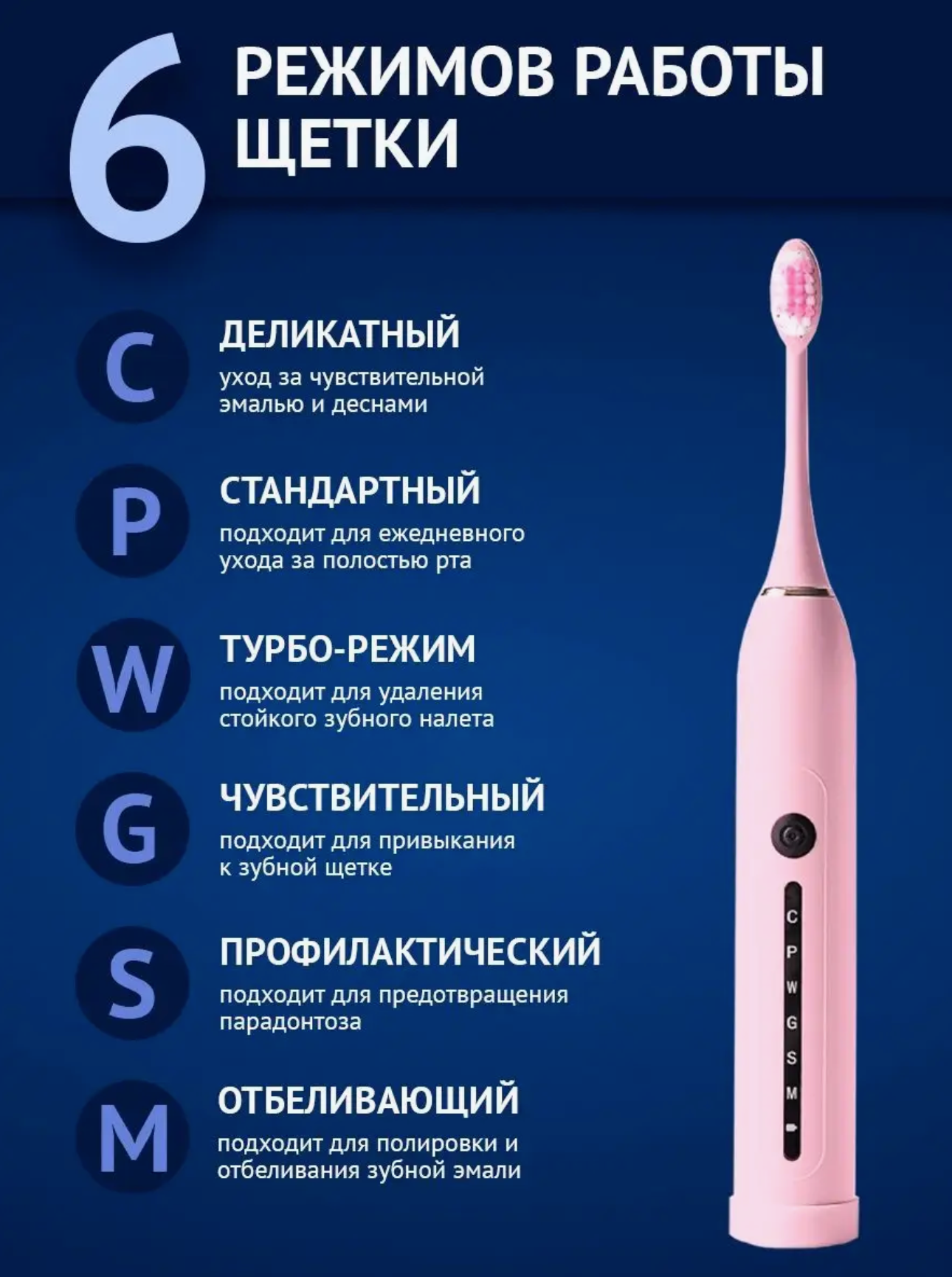 Купить Электрическая ультразвуковая зубная щетка X7 для чистки зубов и для дёсен для детей и взрослых, розовая