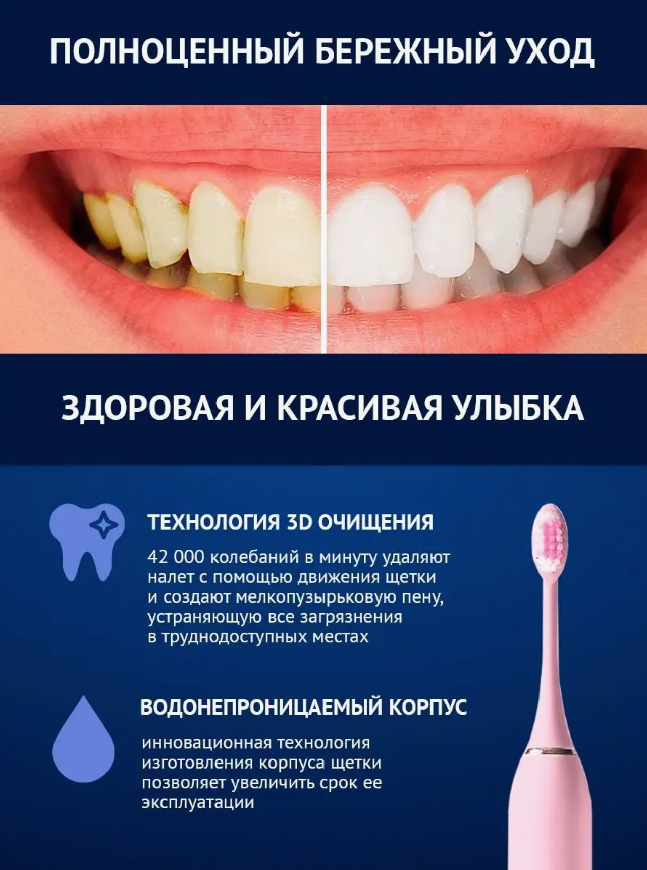 Ниже Вы можете прочитать отзывы на Электрическая ультразвуковая зубная щетка X7 для чистки зубов и для дёсен для детей и взрослых, розовая, ознакомится с подробными характеристиками, посмотреть интересные обзоры и фотографии на Электрическая ультразвуковая зубная щетка X7 для чистки зубов и для дёсен для детей и взрослых, розовая.