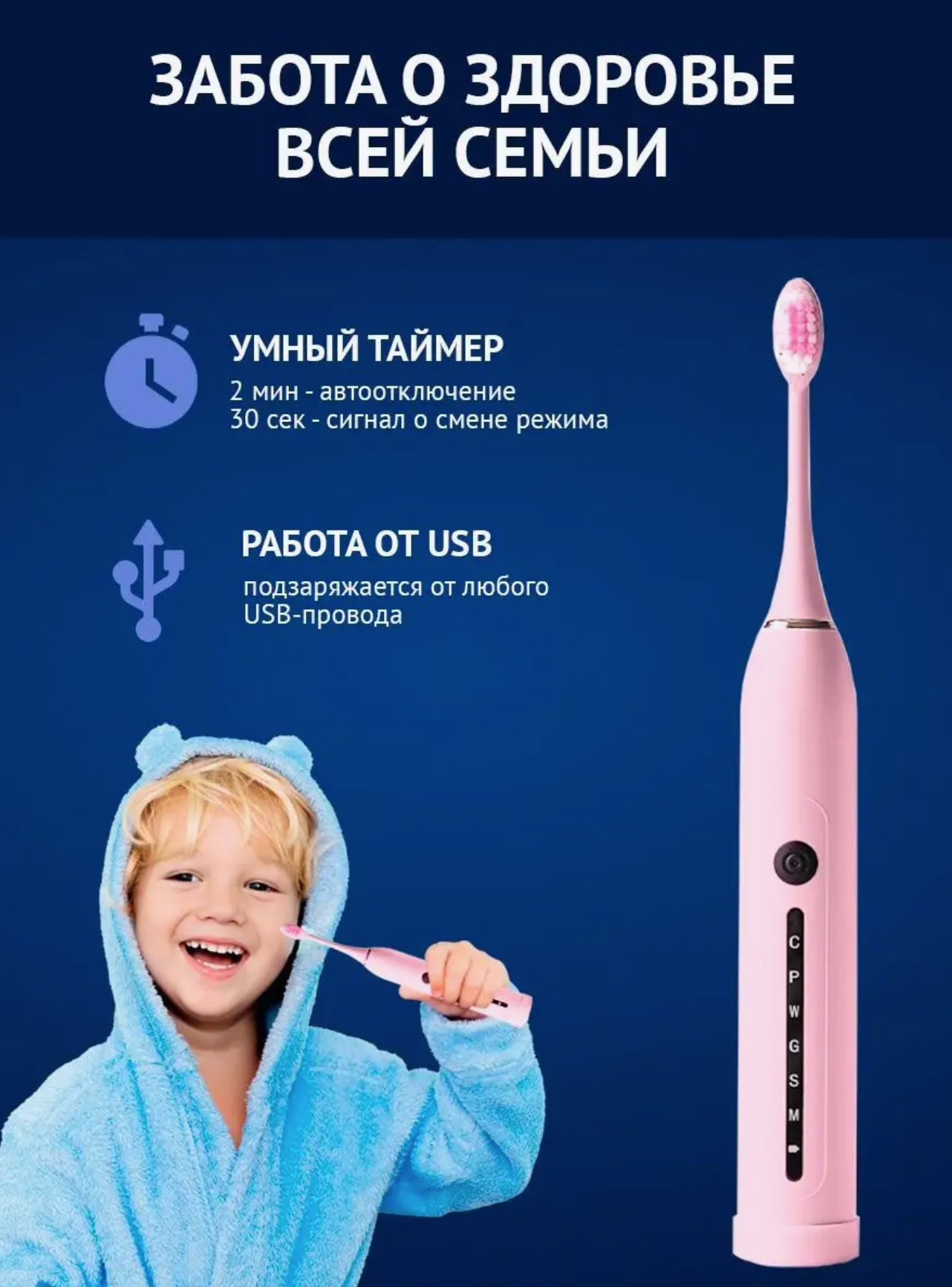 СохранитьЭлектрическая ультразвуковая зубная щетка X7 для чистки зубов и для дёсен для детей и взрослых, розовая интересное: