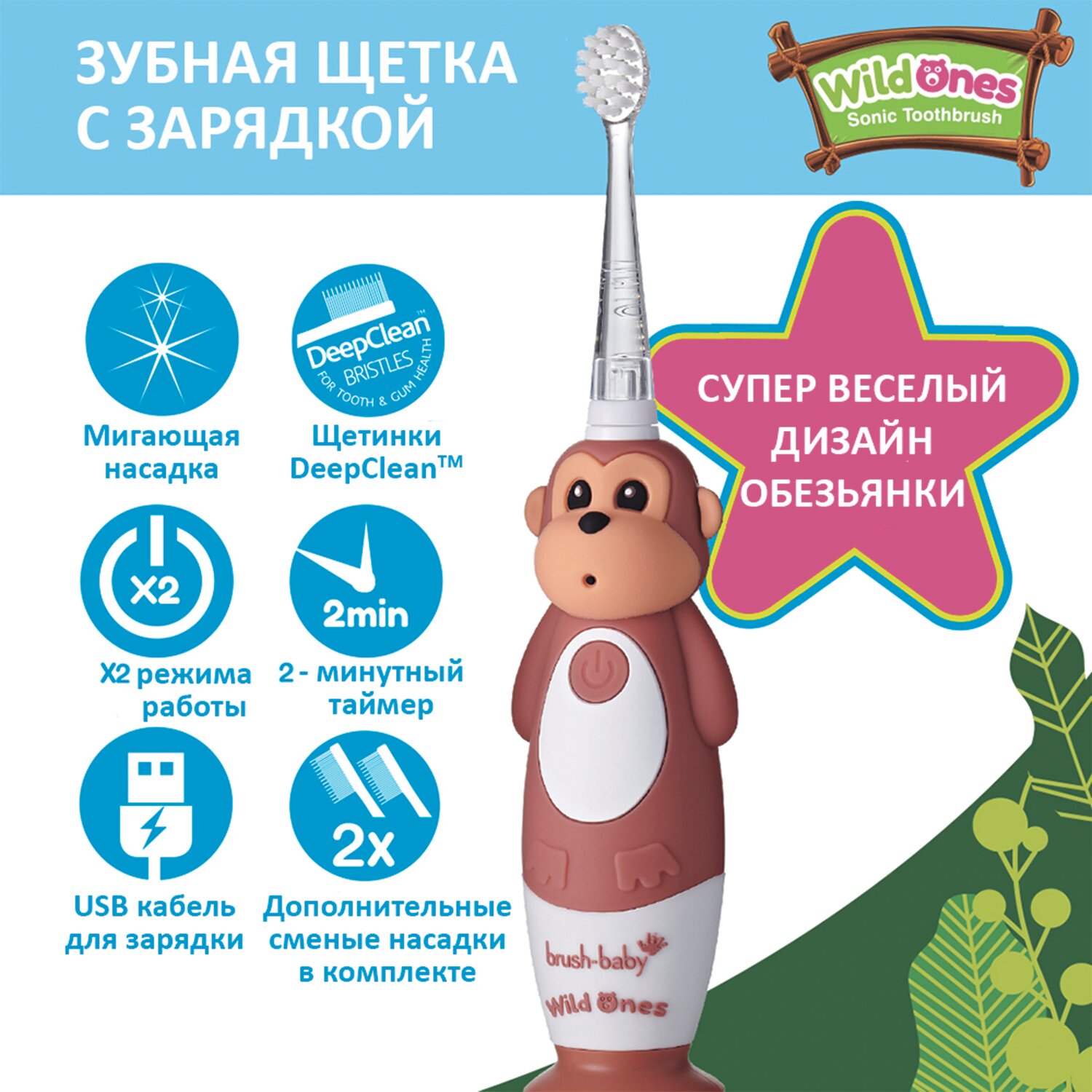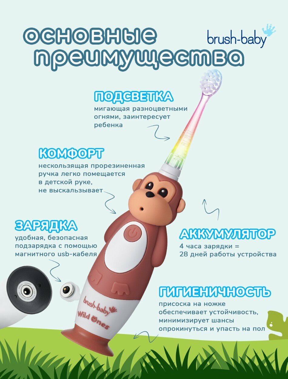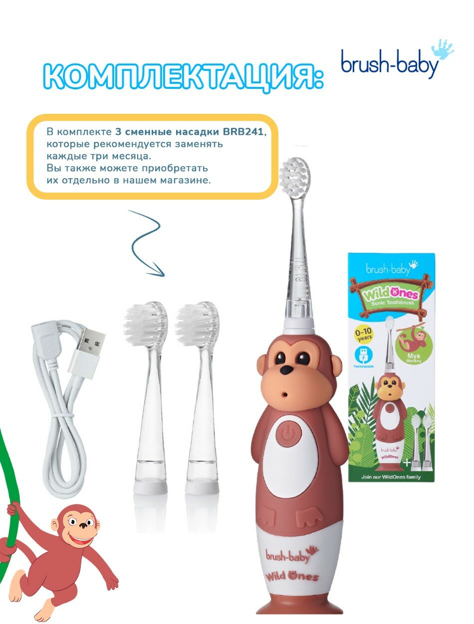 СохранитьBrush-Baby Sonic WildOnes звуковая зубная щетка Обезьяна 0-10 лет интересное: