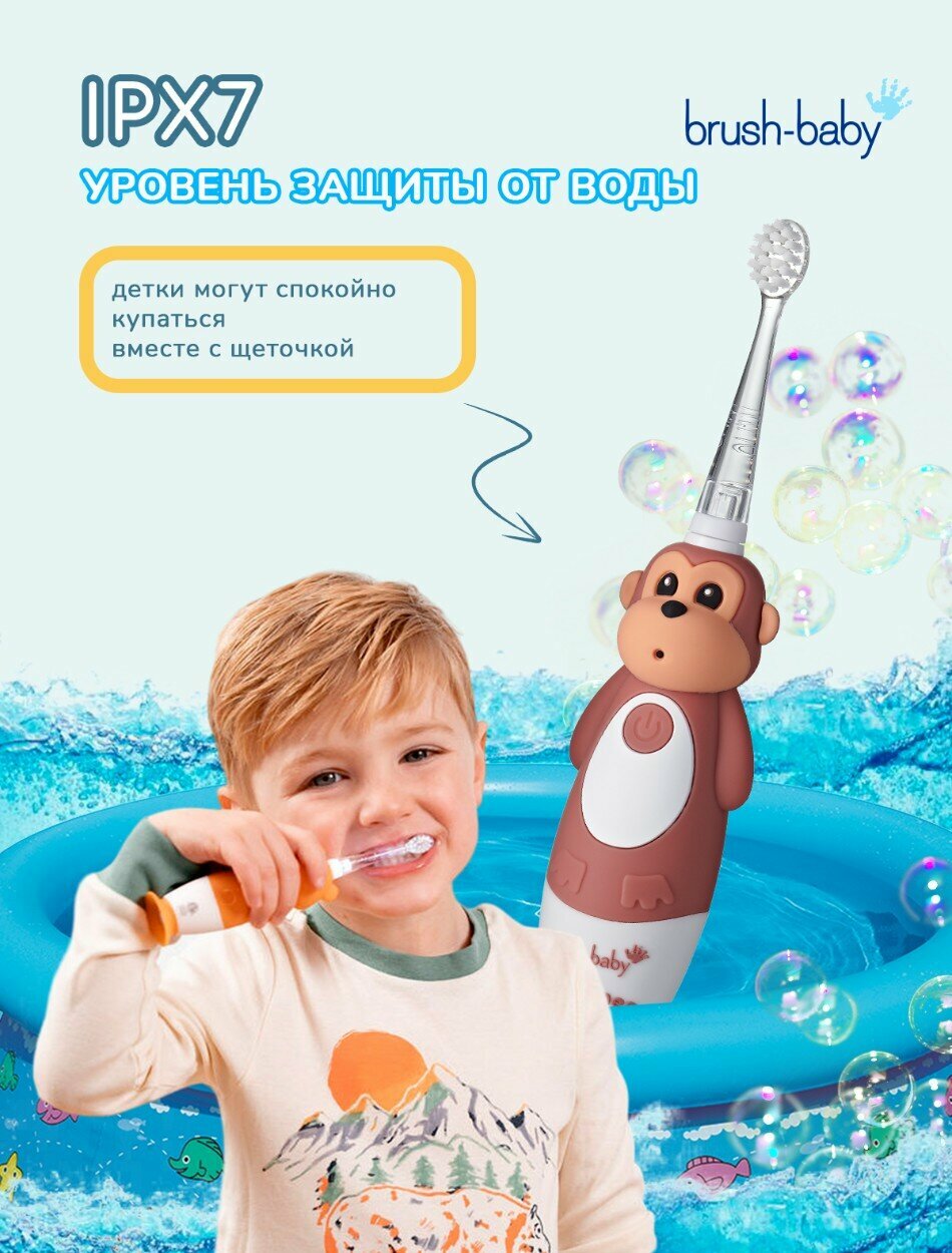 Звуковая электрическая зубная щетка Brush-Baby Sonic Обезьяна 0-10 лет