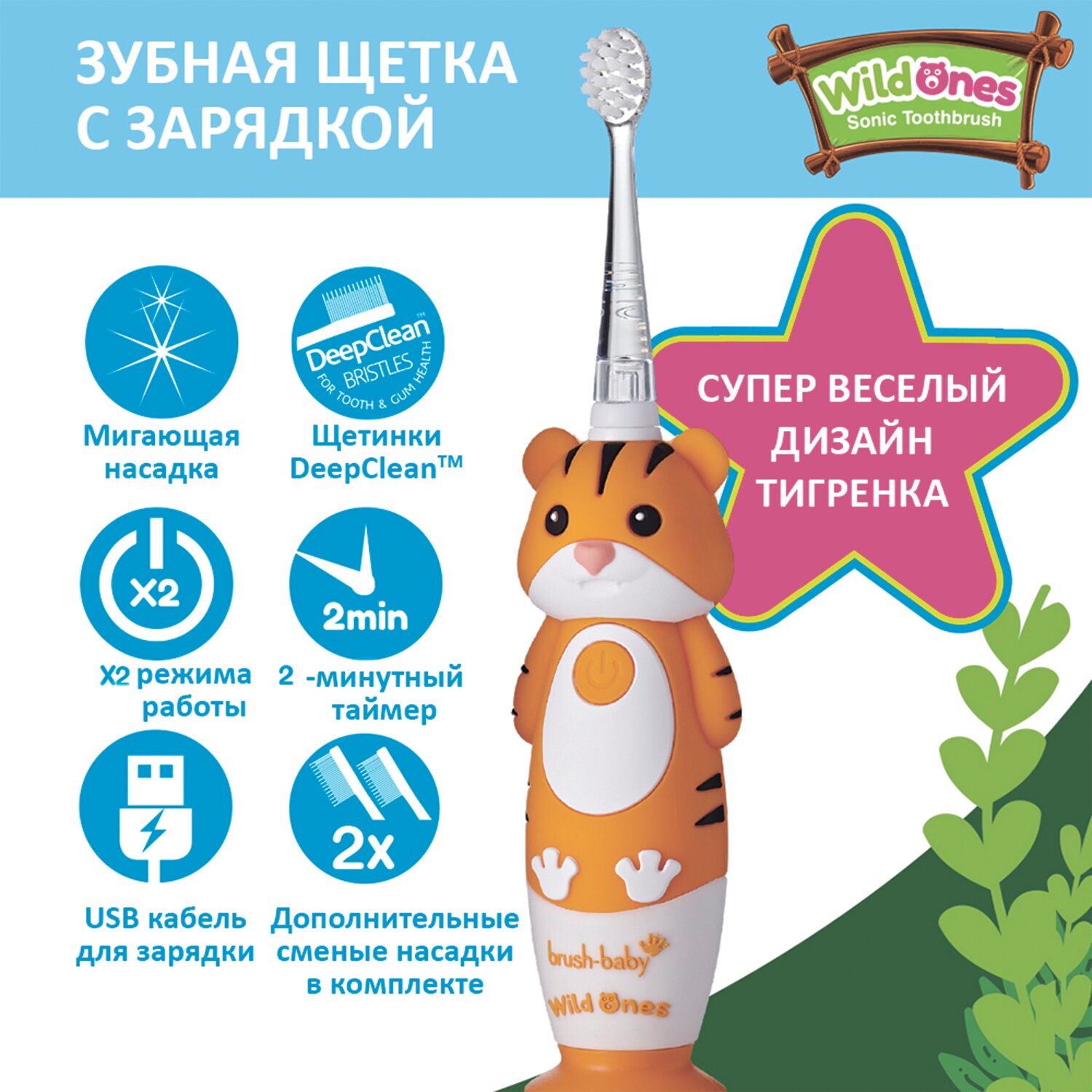 Купить Brush-Baby Sonic WildOnes звуковая зубная щетка Тигр 0-10 лет