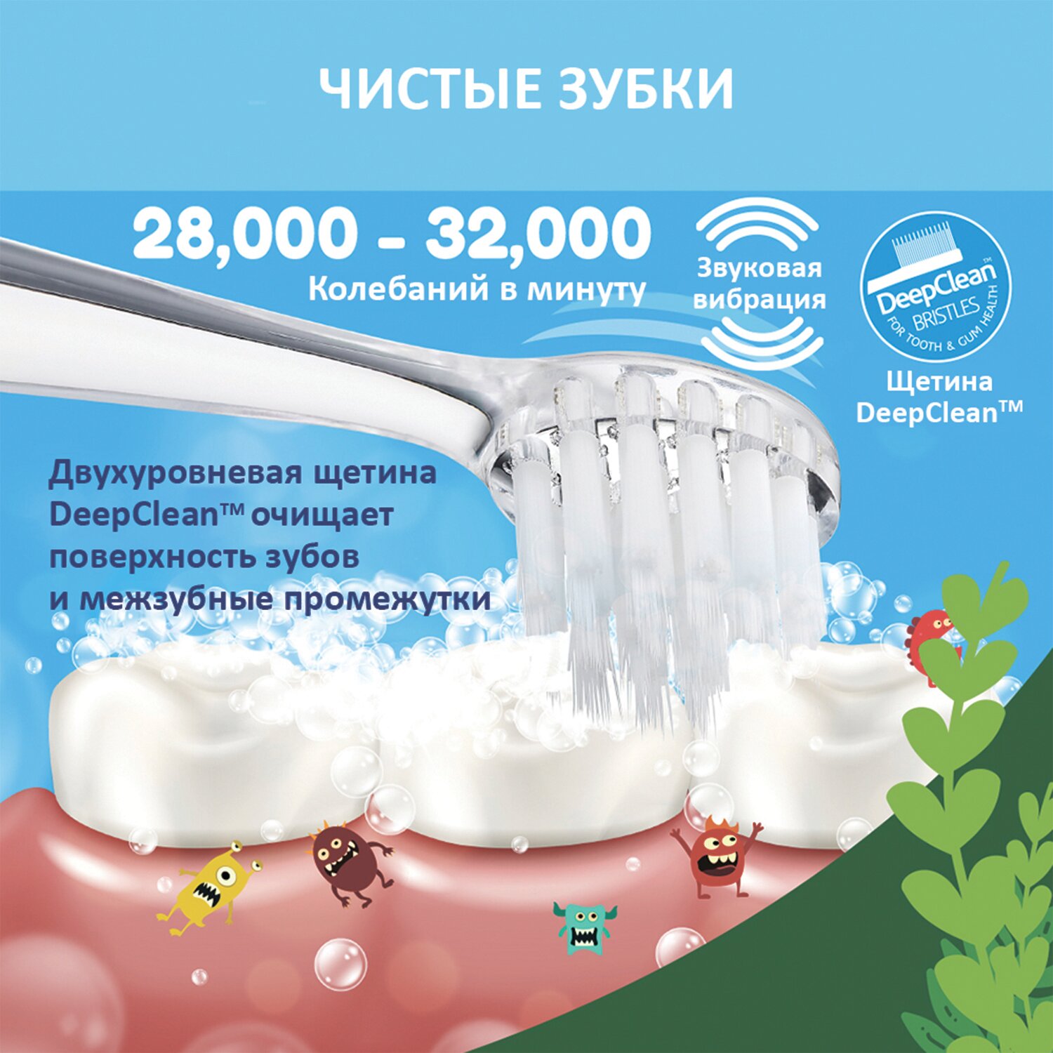 | Подробная комплектация | Зубная щетка, 3 сменные насадки, зарядное устройство |