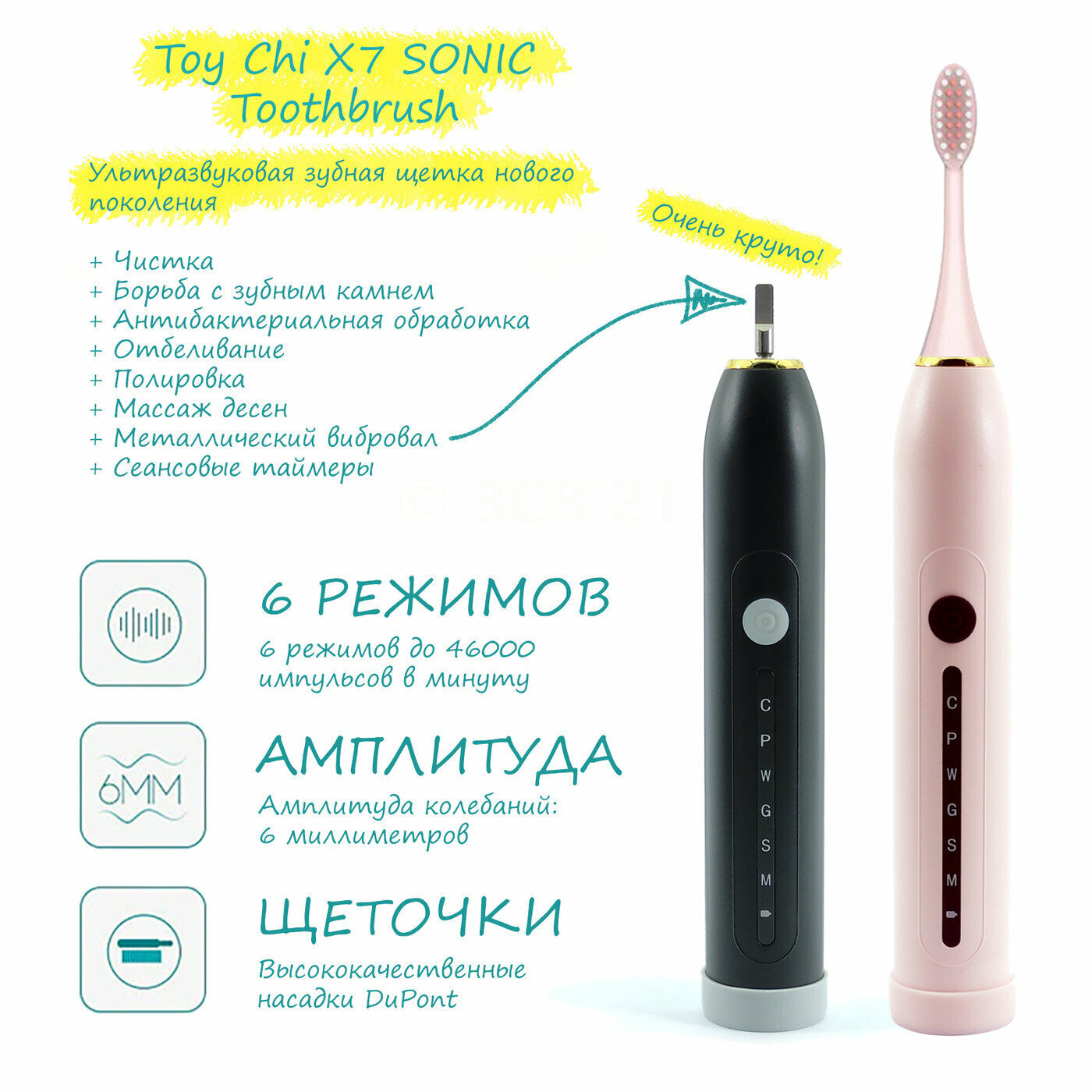 Электрическая зубная щетка ультразвуковая Toy Chi X7 SONIC Toothbrush, розовая интересное: