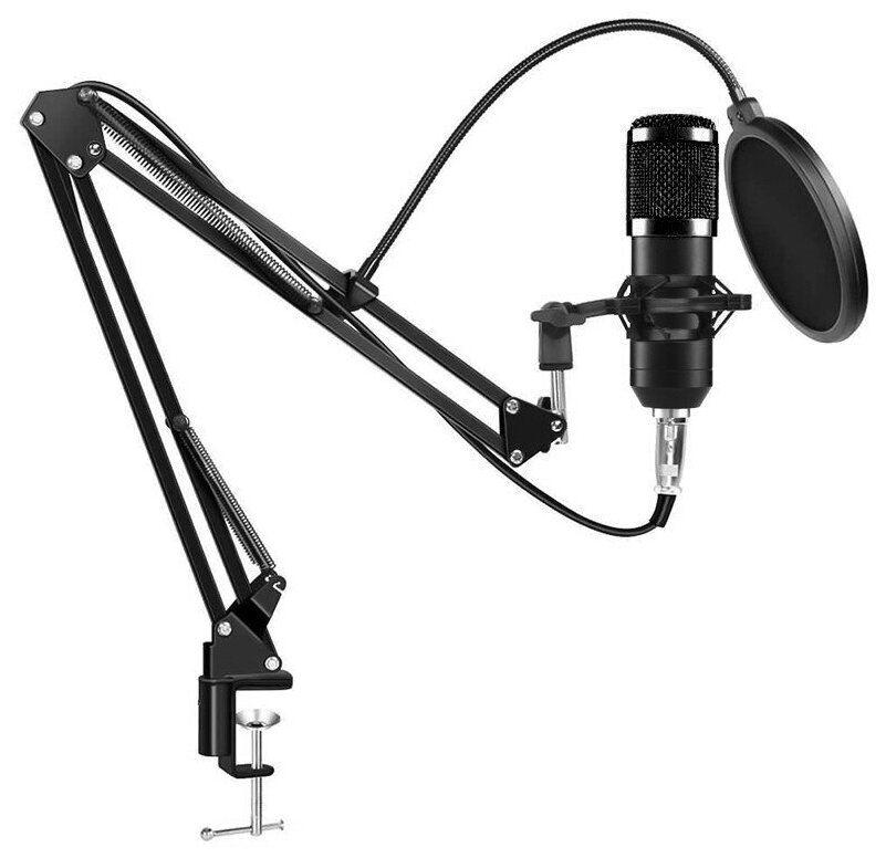Конденсаторный микрофон BM-800, USB звуковой адаптер, стойка, поп-фильтр, ветрозащита, паук, черный интересное: