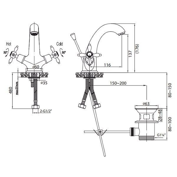 Смеситель для раковины с донным клапаном хром, ручки хром Cezares Golf GOLF-LS1-01
