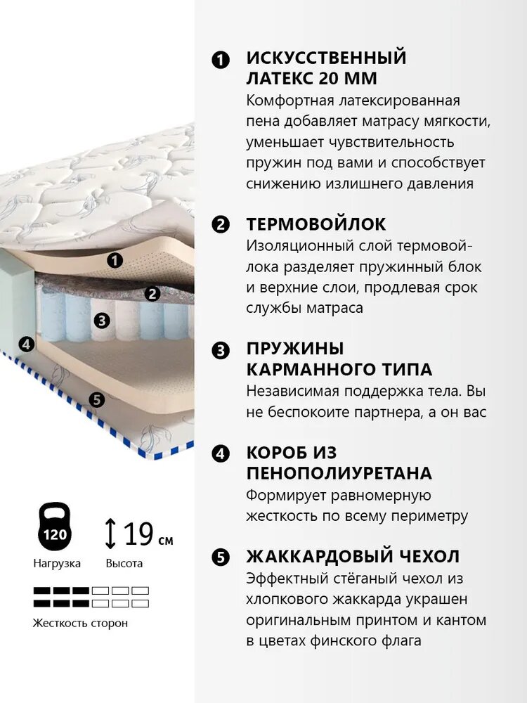 СохранитьМатрас Corretto Suomi Line Juhla с независимыми пружинами 160х186 см интересное: