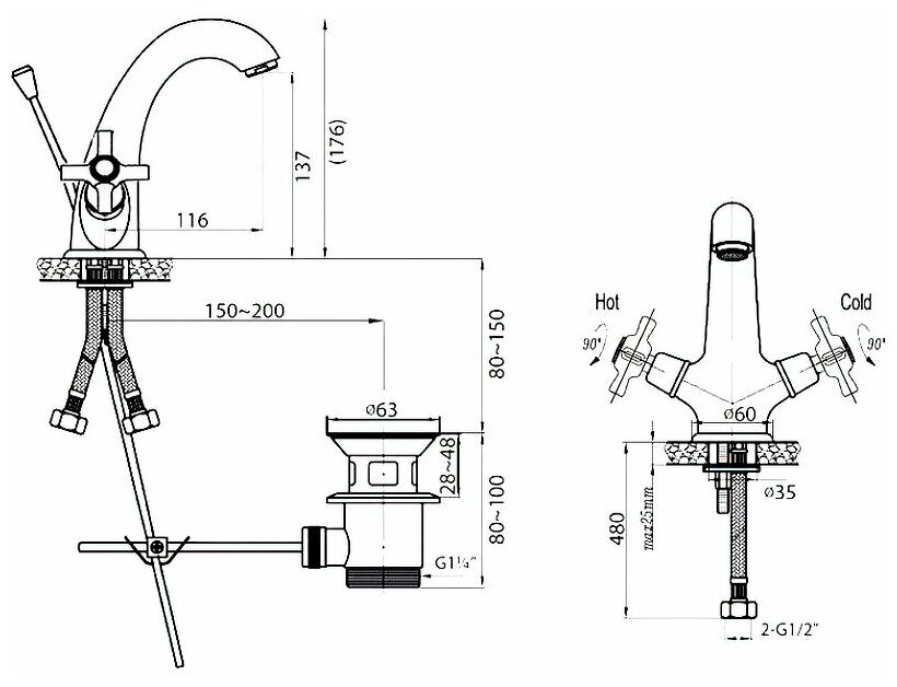 | Высота излива | 137 мм / 176 мм |