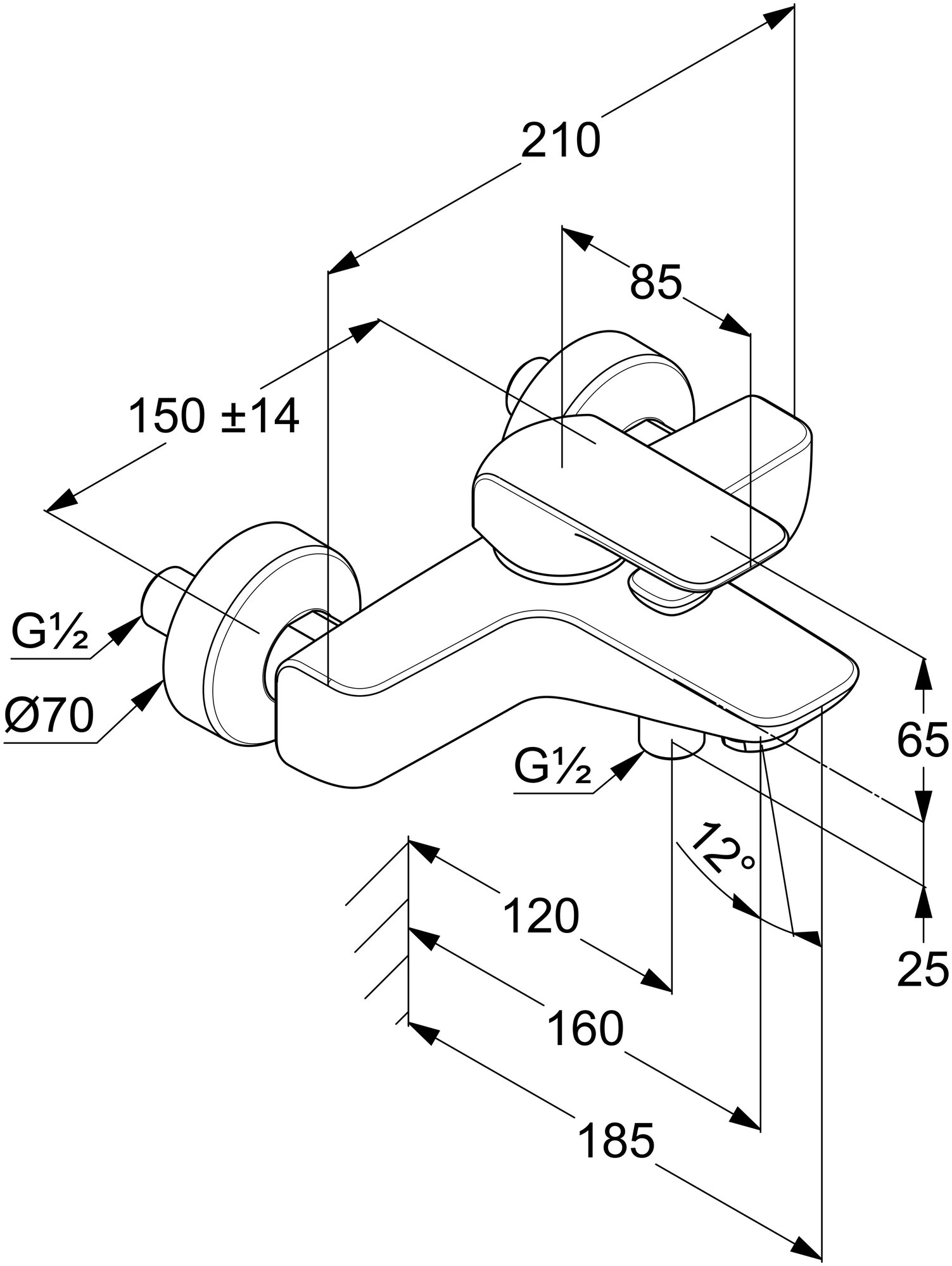 Купить Настенный смеситель Kludi Ameo, арт. 414450575, неповоротный излив, с выходом на душ (без лейки)
