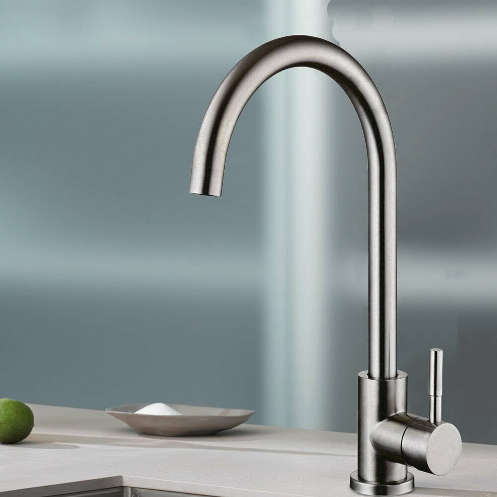 Смеситель Olive's "Balear", для кухонной мойки, с высоким поворотным изливом из нержавеющей стали
