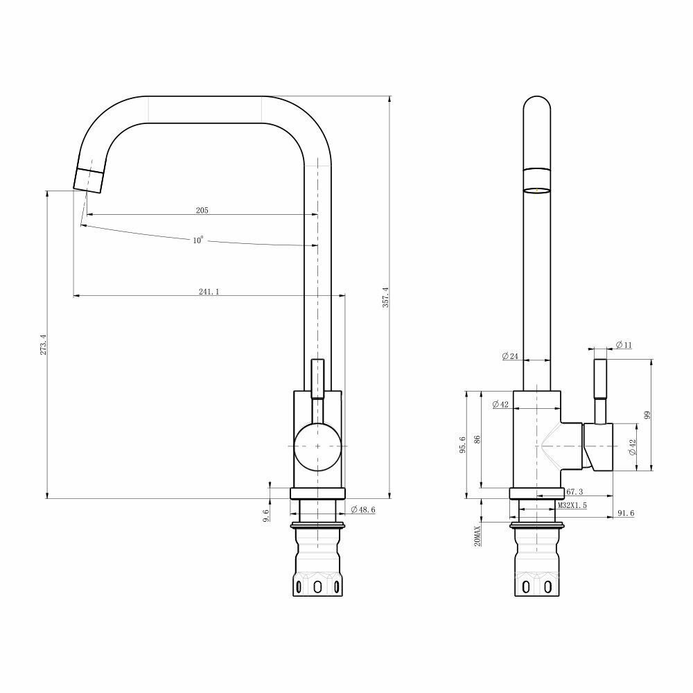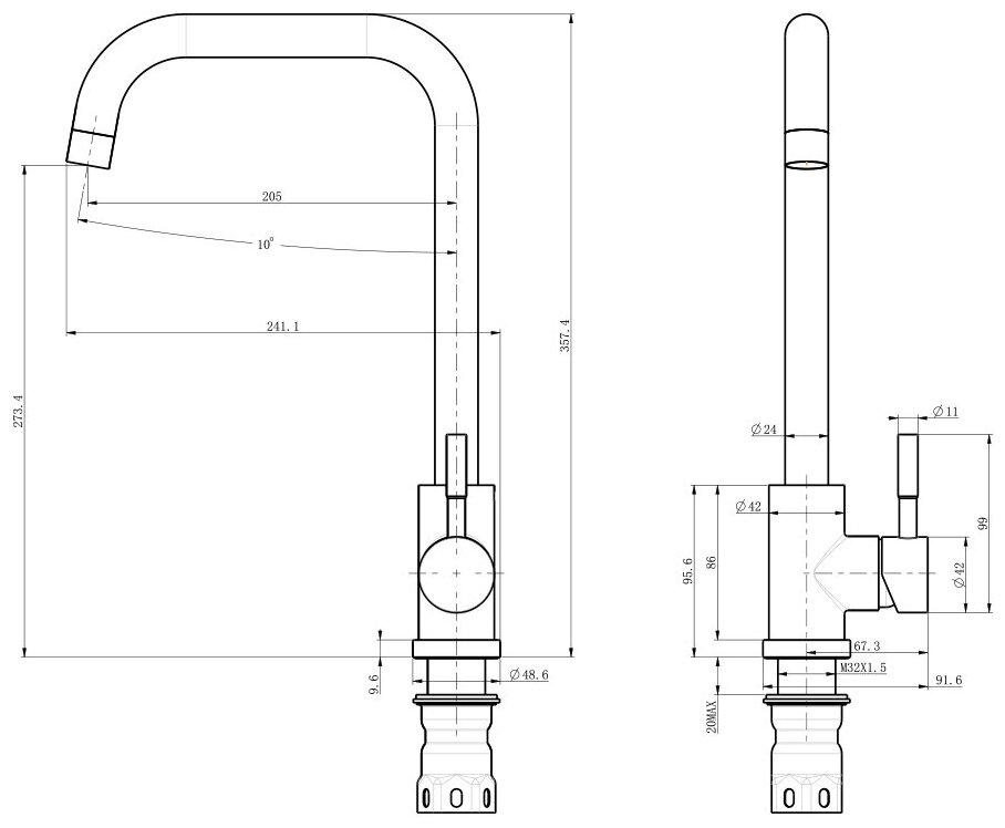 | Высота излива | 273 мм |