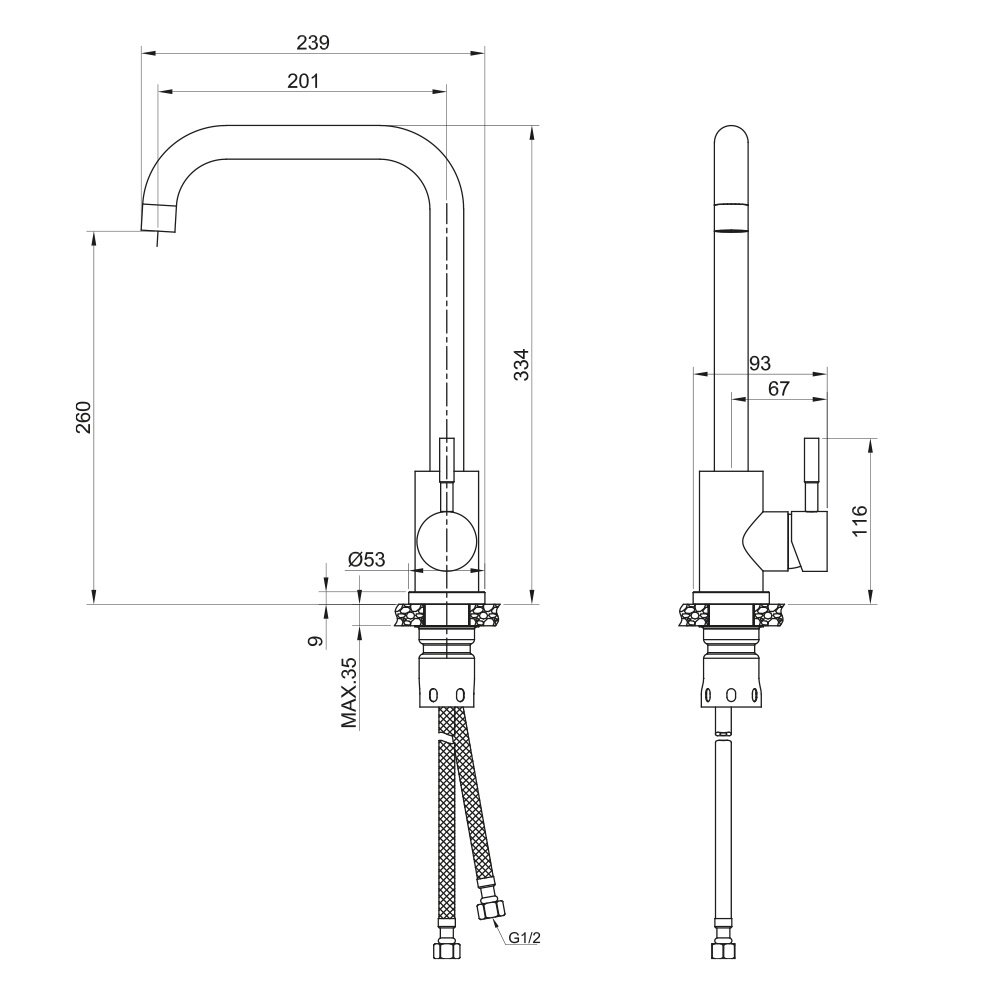 Смеситель для кухни OLIVE'S BALEAR 13435-2BL из нержавеющей стали с высоким изливом