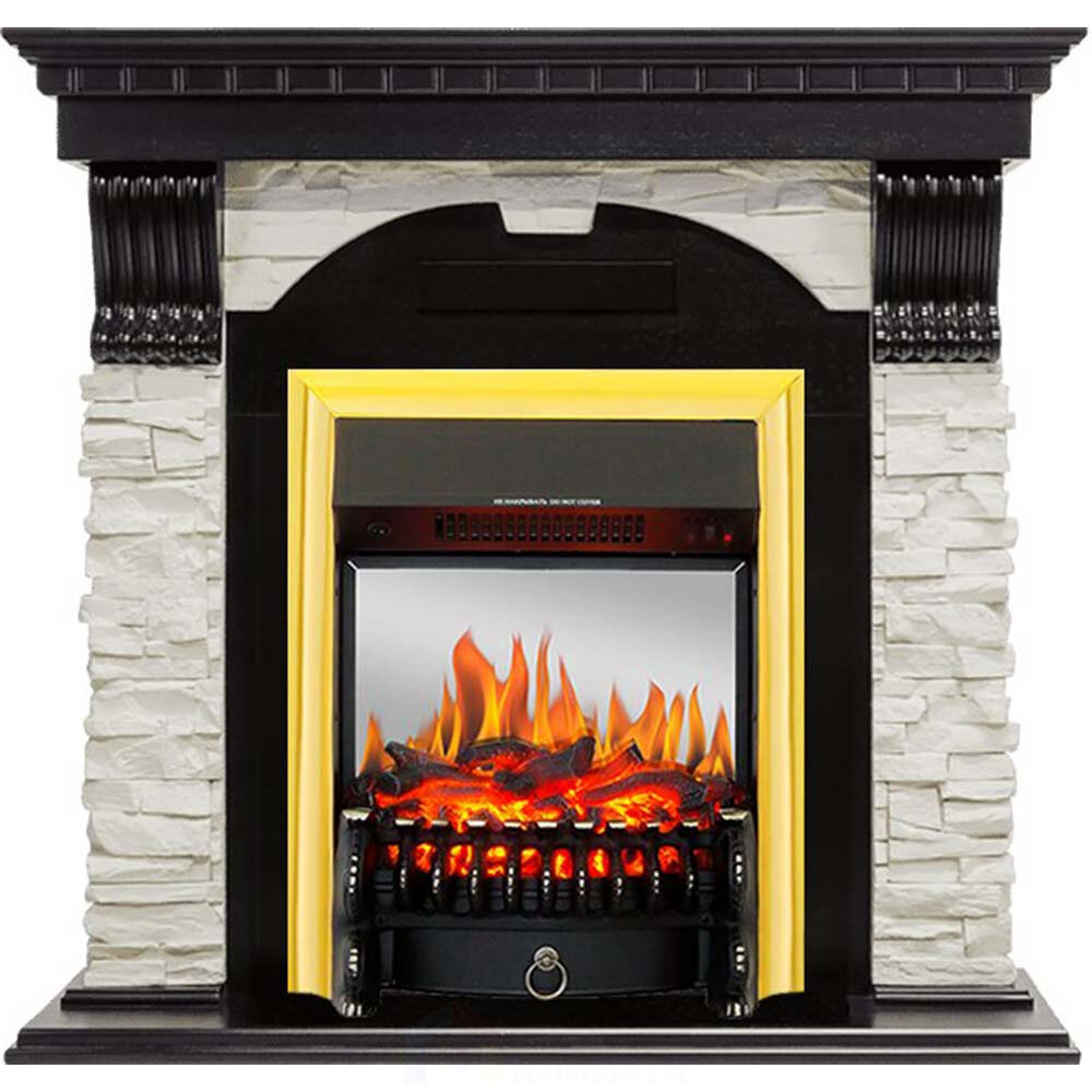 Каминокомплект Royal Flame Dublin - Венге / Сланец белый с очагом Fobos FX M Brass, Черный