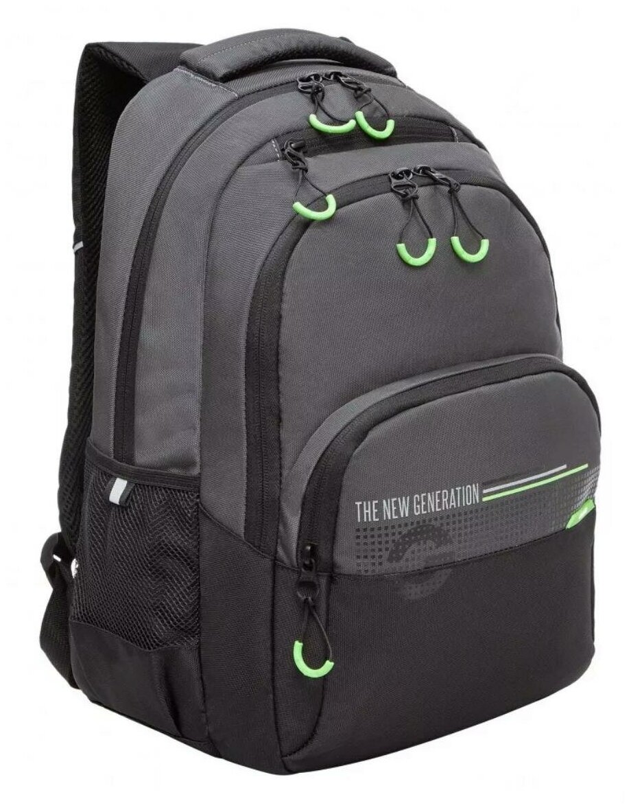 Рюкзак Grizzly "The New Generation", 32х45х23 см, 2 отделения, 4 кармана, анатомическая спинка, черно-серый (RU-330-4/3)