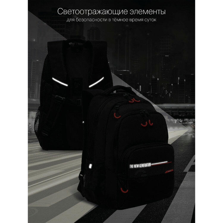 Школьный рюкзак с ортопедической спинкой GRIZZLY RU-330-4 черный - красный, грудная стяжка, 32х45х23см, 2 отделения, 20.5л