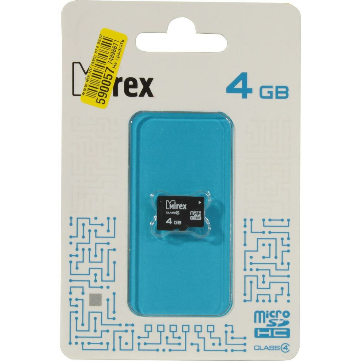 Карта памяти Mirex microSDHC 4GB Class 4 (13612-MCROSD04)