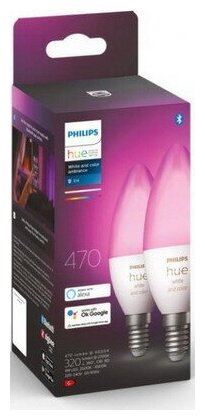 Набор из 2 умных ламп Philips Hue WCA 5.3W B39 E14 RUS 2p RGBW (929002294210)