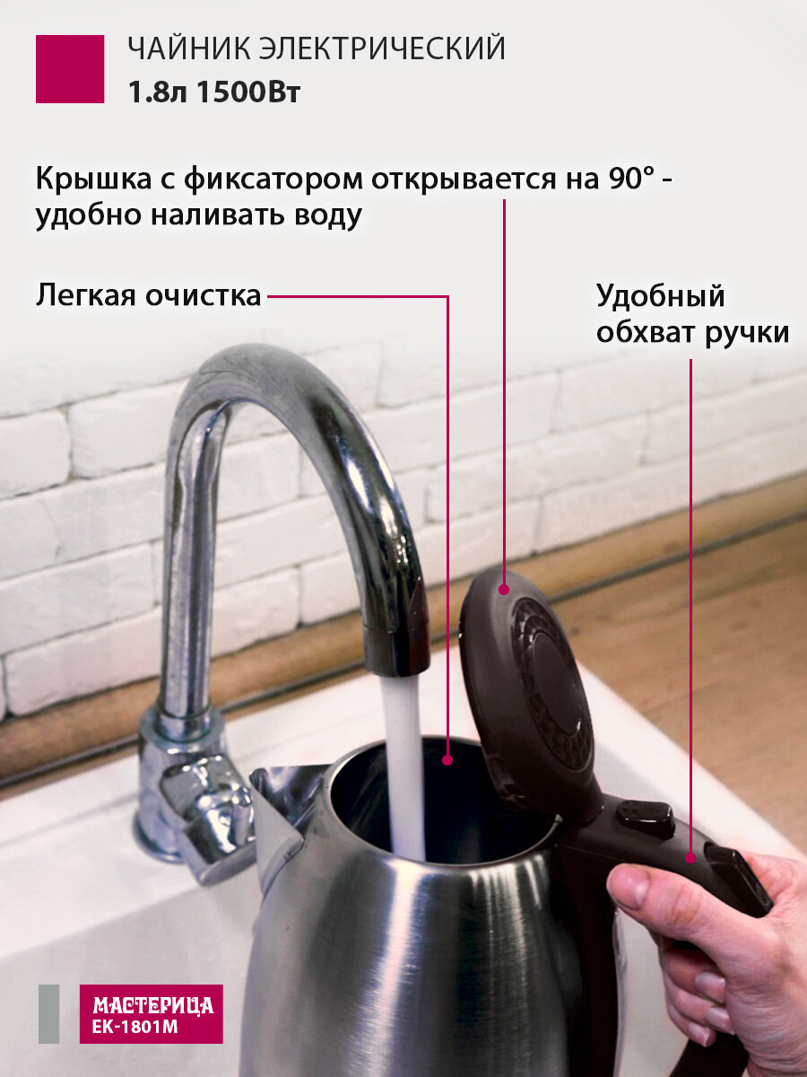 Чайник электрический Мастерица Ek-1801м, рубин, 1,8л, нержавейка Ek-1801м, рубин .