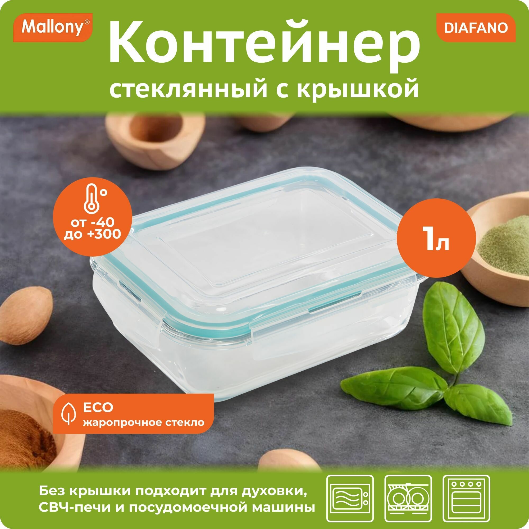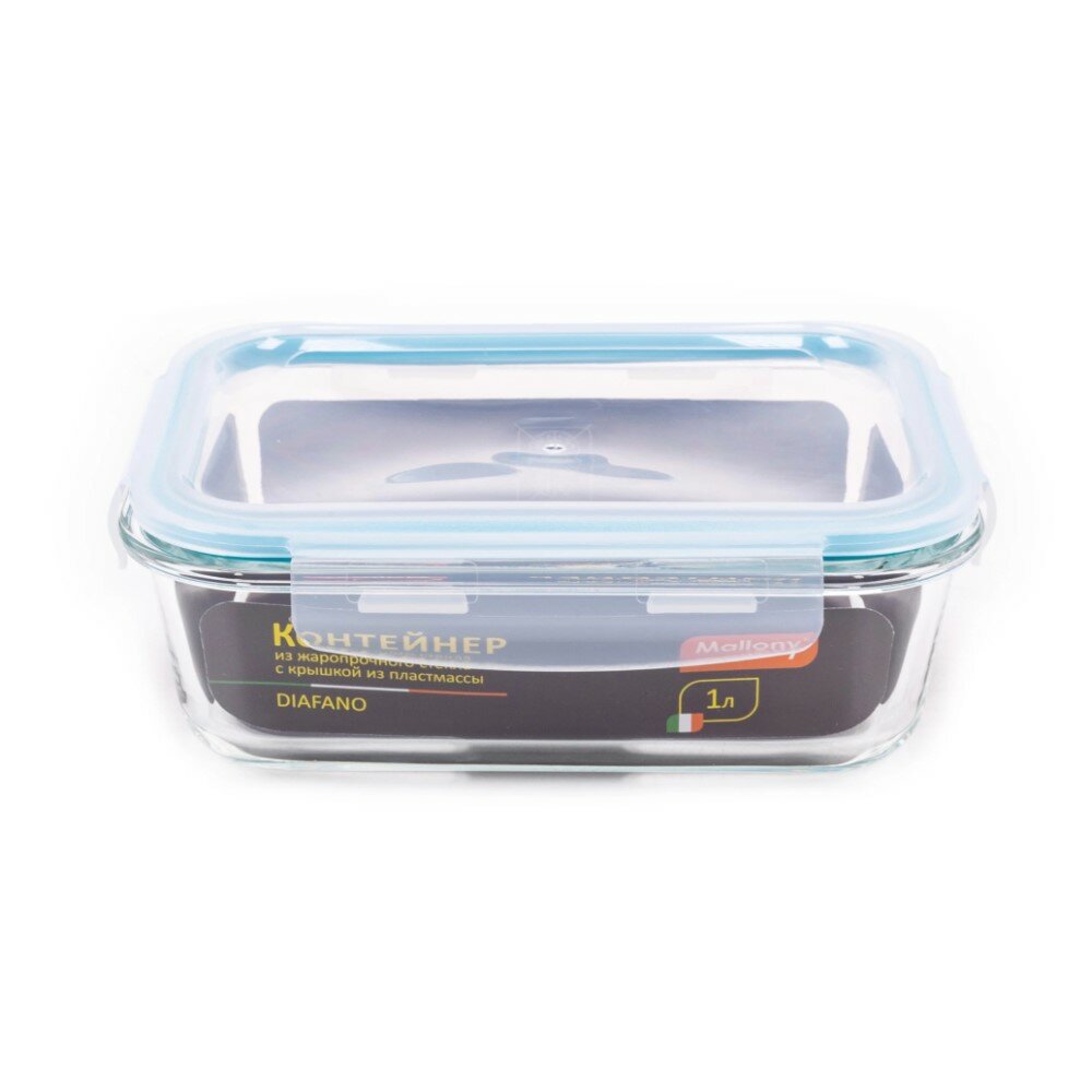 Контейнер Mallony Diafano 1 л, жаропрочное стекло, пластиковая крышка