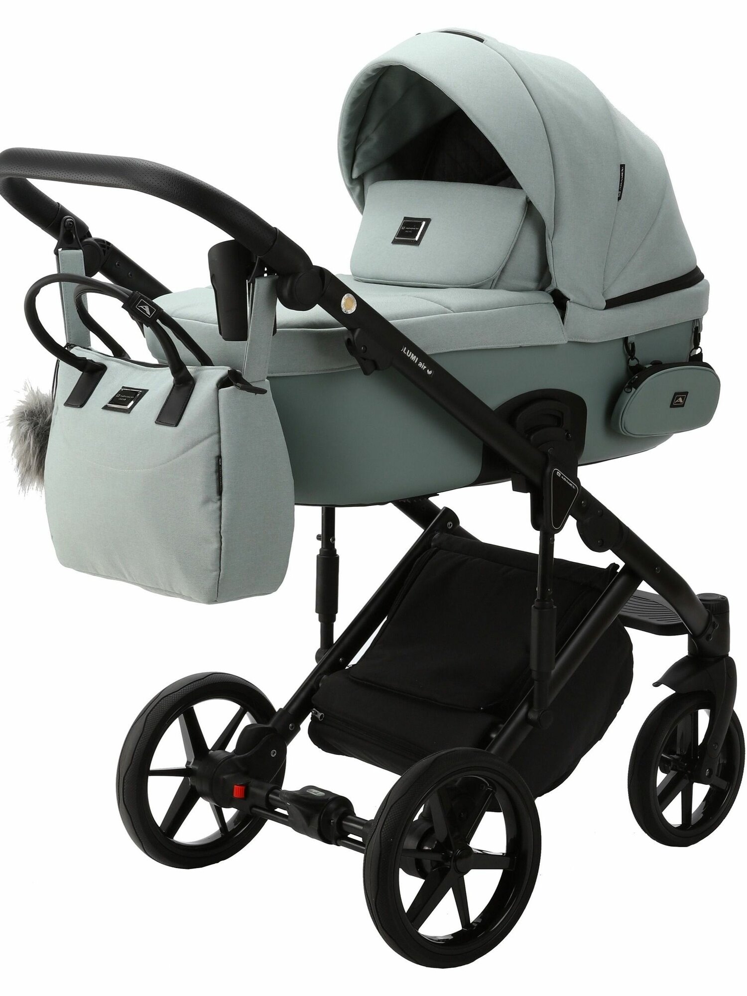 Купить Коляска универсальная Adamex Lumi air LUX 2 в 1, PS-25 - Серо-зеленый с серо-зеленой эко-кожей
