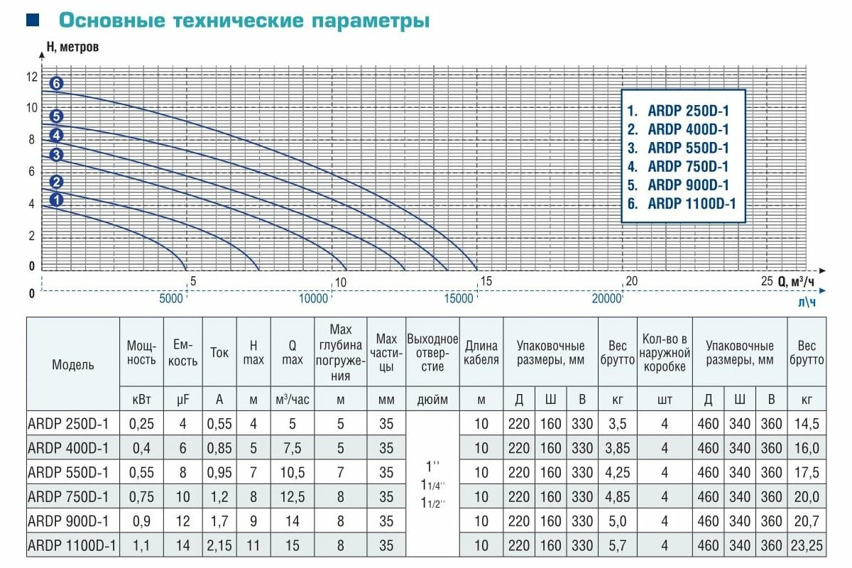 | Максимальный напор | 8 м |