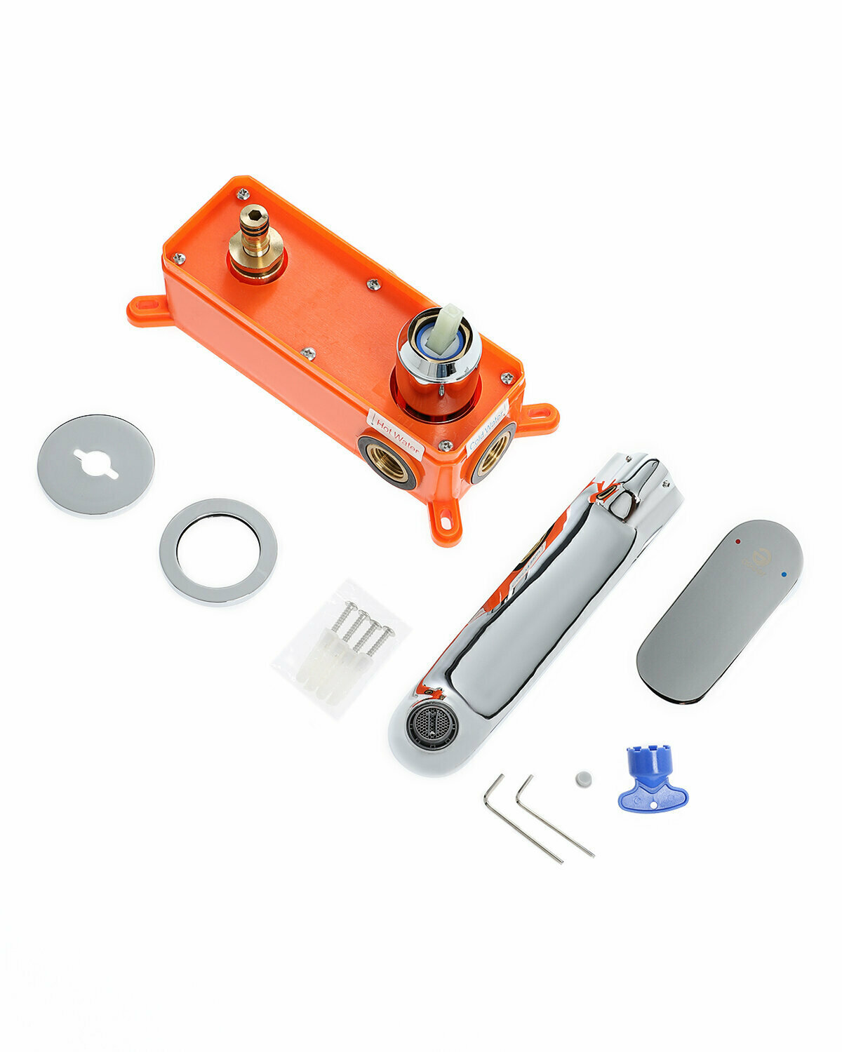 | Комплектация | Внутренняя часть смесителя, внешняя часть смесителя, излив, инструкция. |