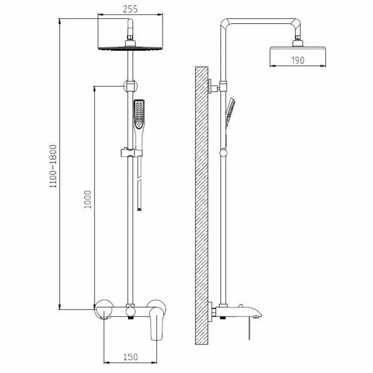 | Форма бокового душа | прямоугольная |