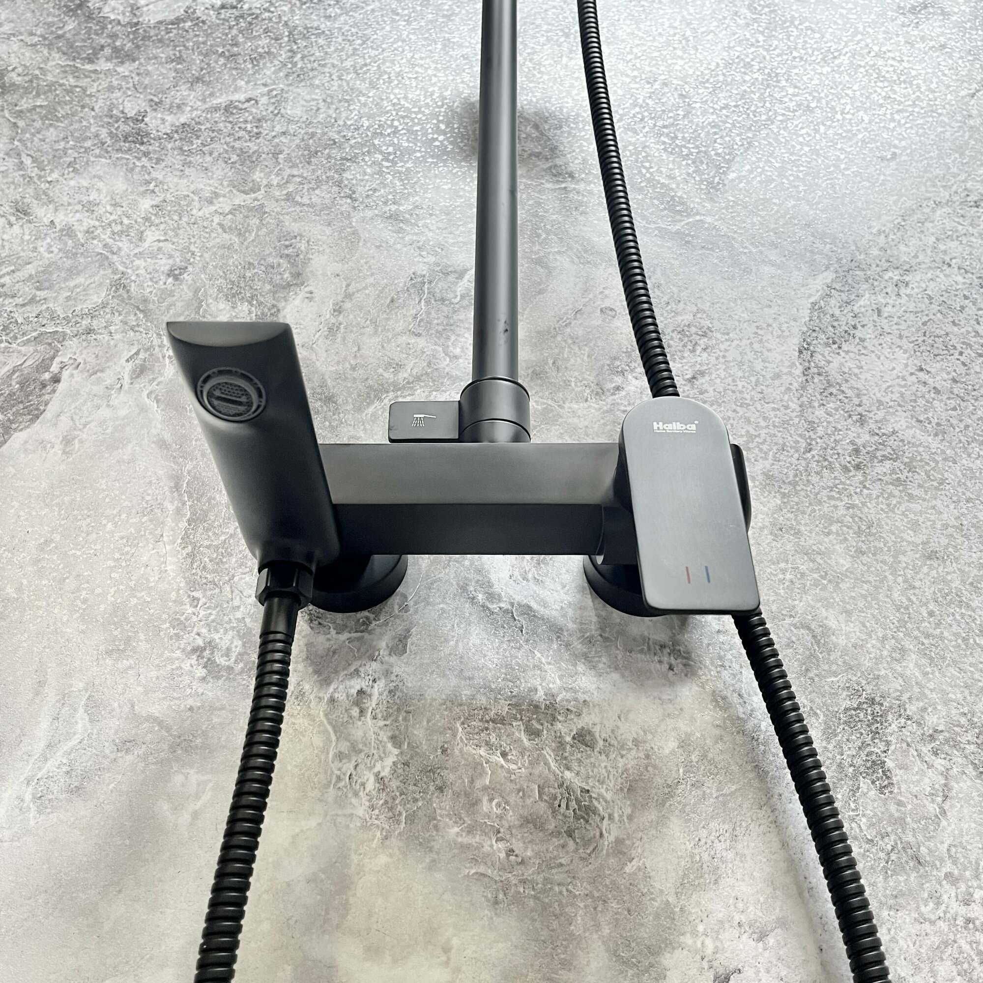 Душевая система и Смеситель для раковины HAIBA HB24816-7-HB10816-7, материал: латунь, цвет: черный.