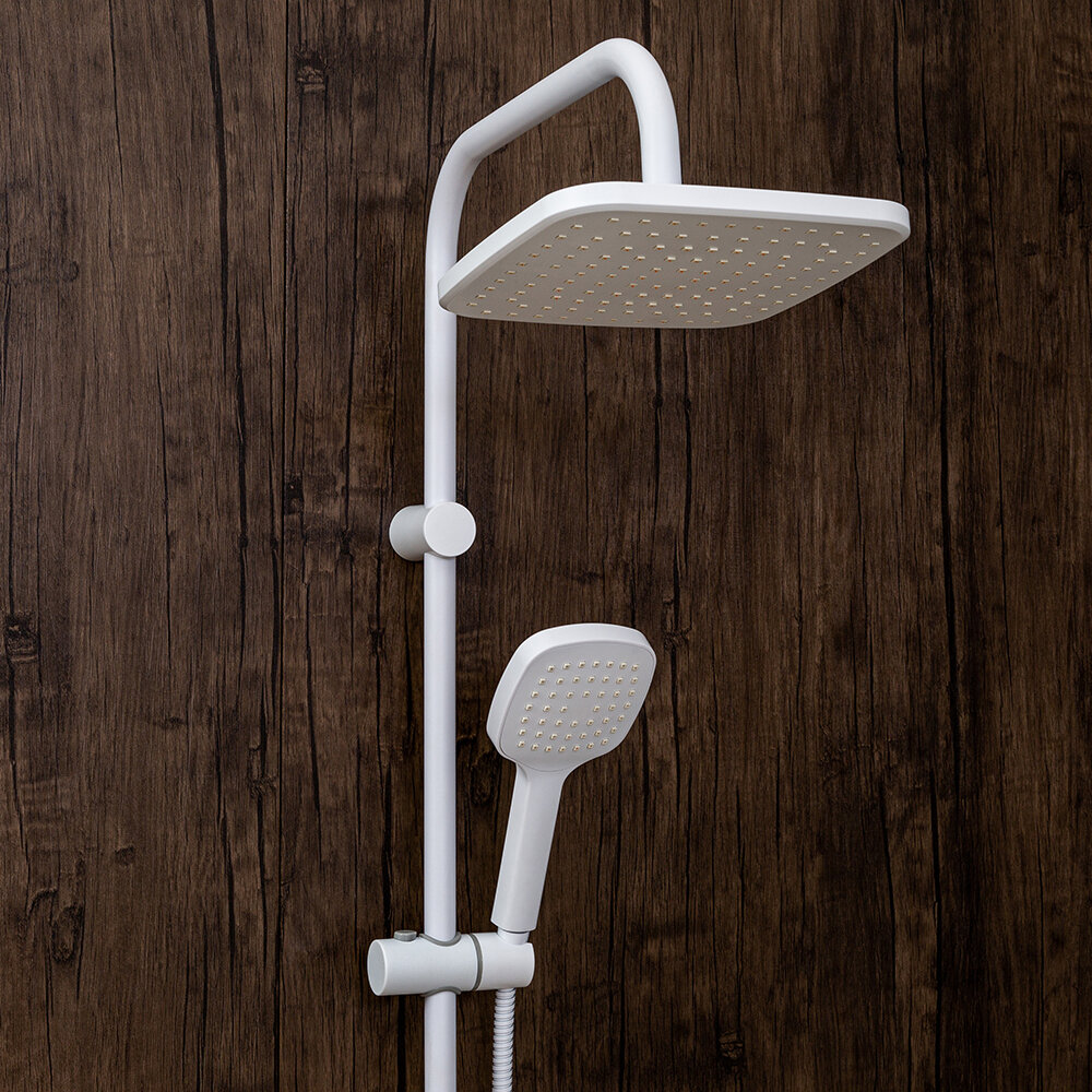 | Плюсы: | В целом хорошая душевая система, выполнена качественно. Но разного белого цвета, кран и шланги холодного белого, а стойка от тропического душа теплого белого, разница заметна. |