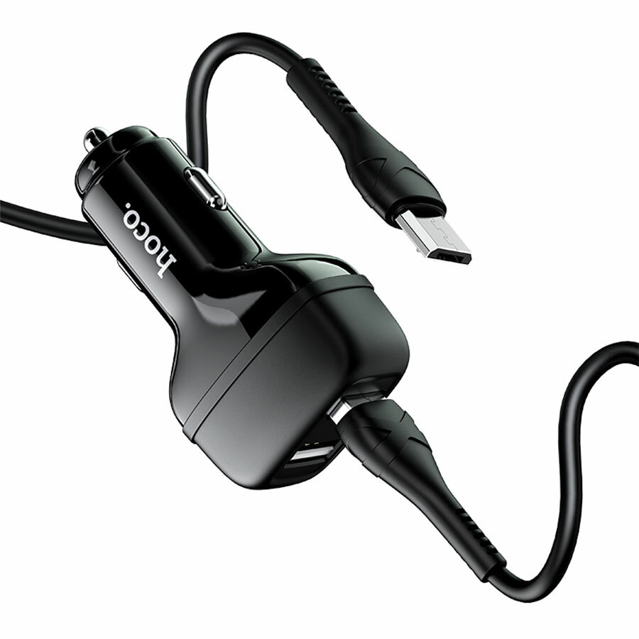Купить Автомобильное зарядное устройство с 2 USB HOCO Z36, 2.4A + кабель micro USB, Black