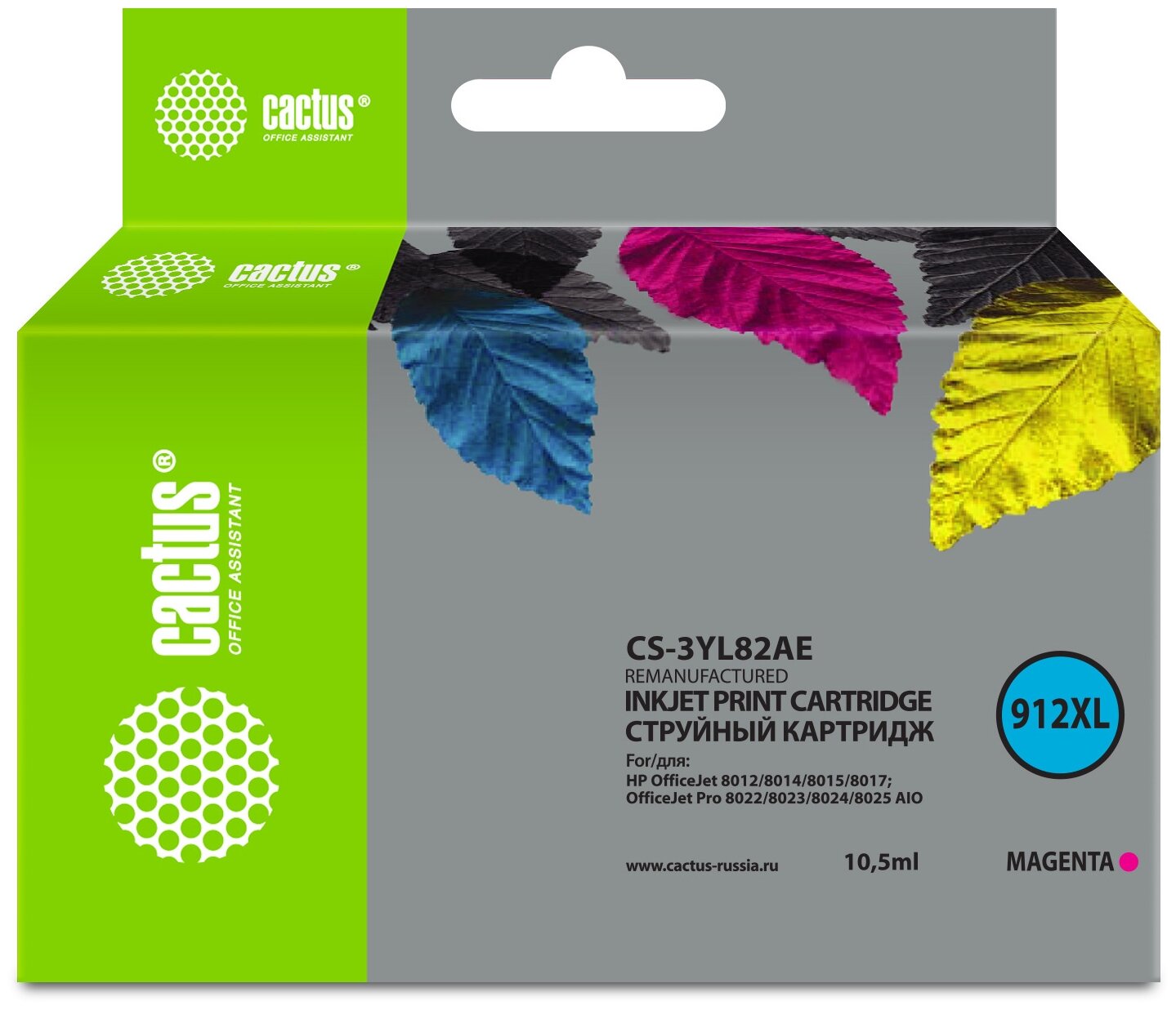 Cactus CS-3YL82AE 912XL Magenta для HP OfficeJet 8012/8014/8015/8017/OfficeJet Pro 8022/8023/8024/8025 AIO