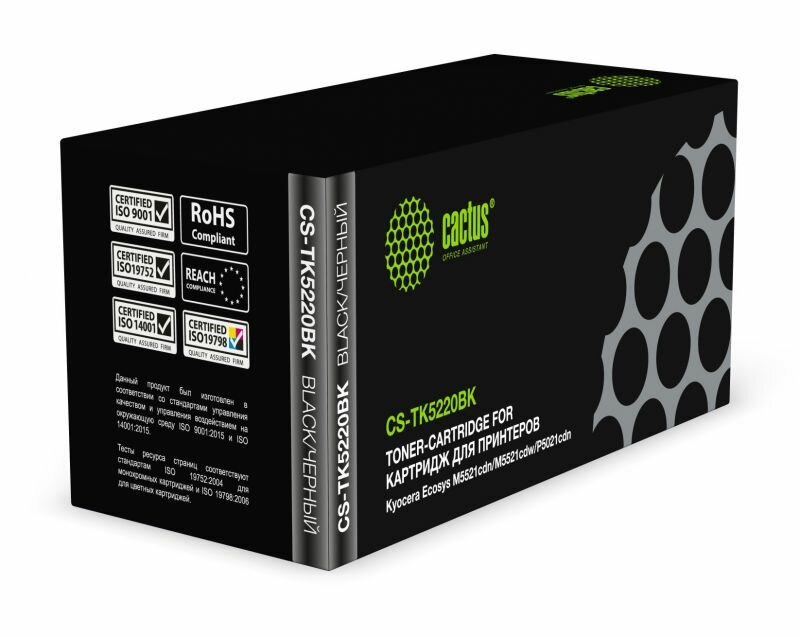 Ниже Вы можете прочитать отзывы на Тонер-картридж CACTUS (CS-TK5220BK) для KYOCERA Ecosys P5021cdn/cdw/M5521cdn, черный, ресурс 1200 стр, ознакомится с подробными характеристиками, посмотреть интересные обзоры и фотографии на Тонер-картридж CACTUS (CS-TK5220BK) для KYOCERA Ecosys P5021cdn/cdw/M5521cdn, черный, ресурс 1200 стр.