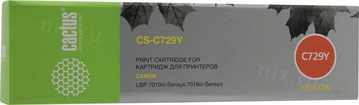 Купить Картридж лазерный Cactus CS-C729Y 729 Y желтый (1000стр.) для Canon i-SENSYS LBP-7010C/ LBP-7018C