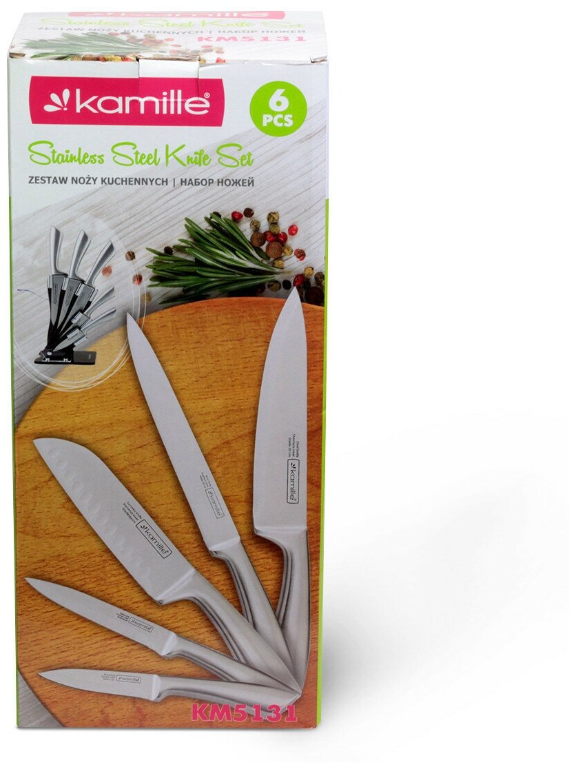 Ниже Вы можете прочитать отзывы на Набор ножей 6 предметов Kamille KM-5131 из нержавеющей стали с акриловой подставкой (6), ознакомится с подробными характеристиками, посмотреть интересные обзоры и фотографии на Набор ножей 6 предметов Kamille KM-5131 из нержавеющей стали с акриловой подставкой (6).