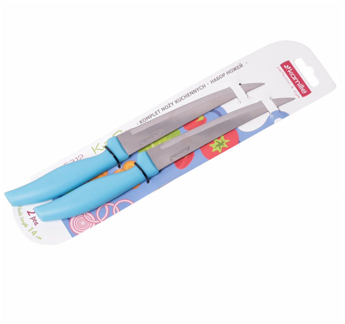Ножи кухонные 2 шт. из нержавеющей стали Kamille KM 5312 с пластиковыми ручками (5312 / голубой)
