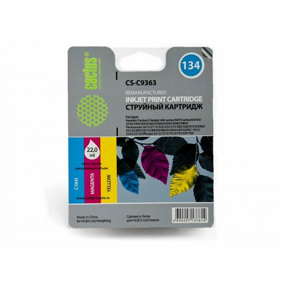 Картридж Cactus CS-C9363, №134, голубой / пурпурный / желтый / CS-C9363