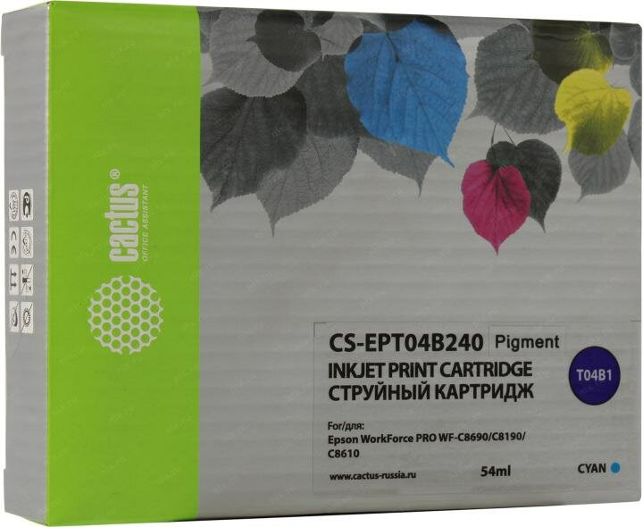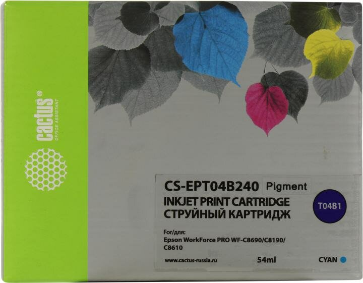 Купить Cartridge ink Cactus CS-EPT04B240 T04B2 cyan (54ml) for Epson WorkForce Pro WF-C8190, WF-C8690