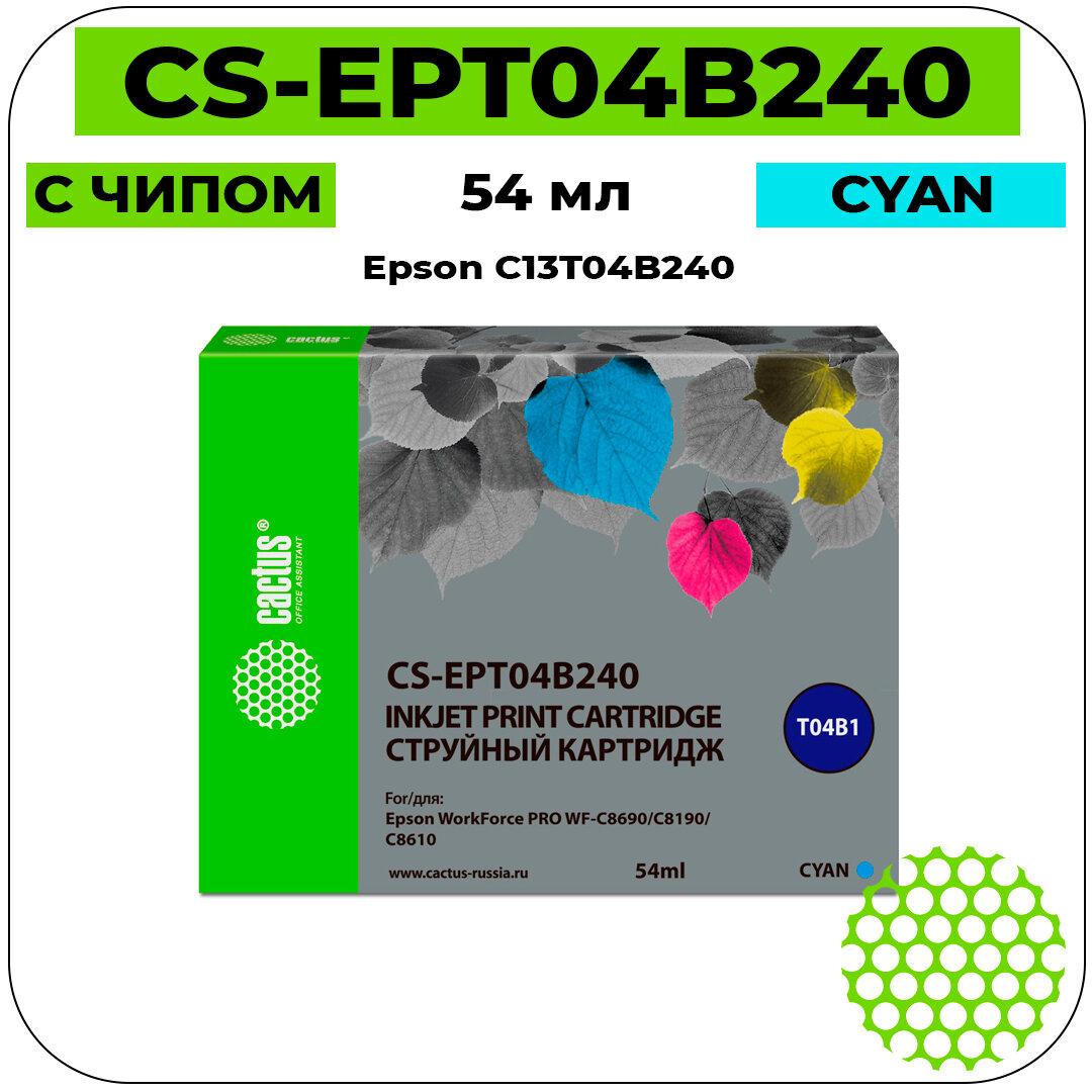 Картридж струйный Cactus CS-EPT04B240 T04B2 голубой (54мл) для Epson WorkForce Pro WF-C8190, WF-C8690