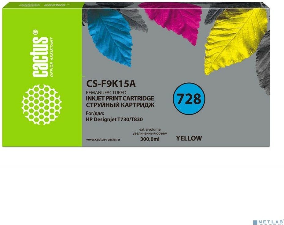 Картридж Cactus струйный 728XXL желтый (300мл) для HP DesignJet T730, T830 CS-F9K15A